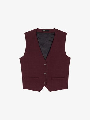 Exposed button fastening at front. Slim fit, lapel collar, padded shoulders, sleeveless, belted at the waist, buckle embellishment at the waist, gold-tone hardware, two flap pockets at the side.