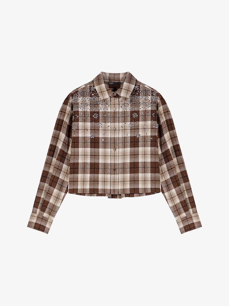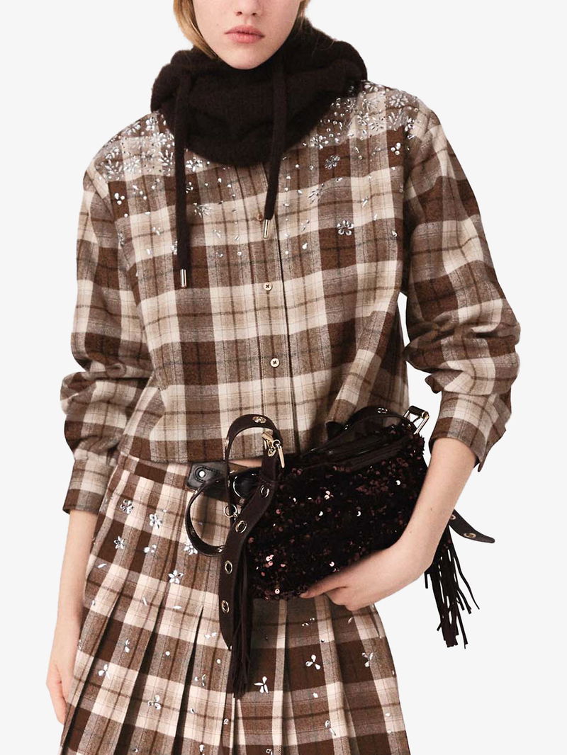 Checked Rhinestone-Embellished Cotton-Blend Shirt