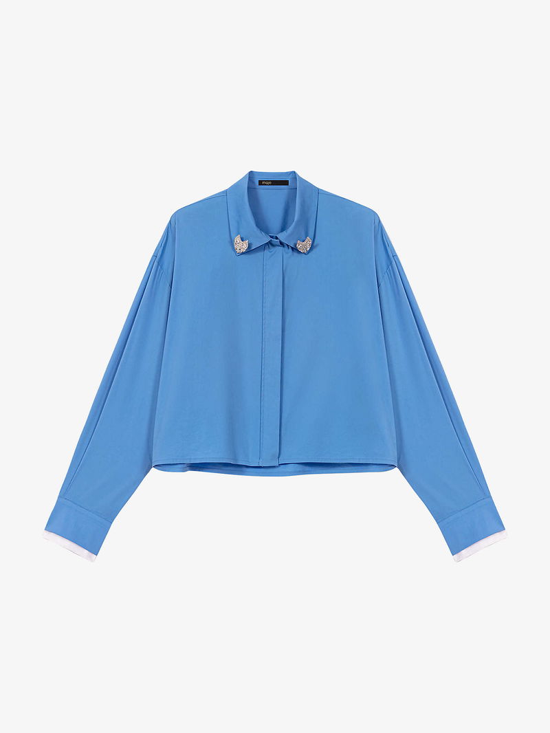 Cropped Diamanté-Embellished Stretch-Cotton Shirt