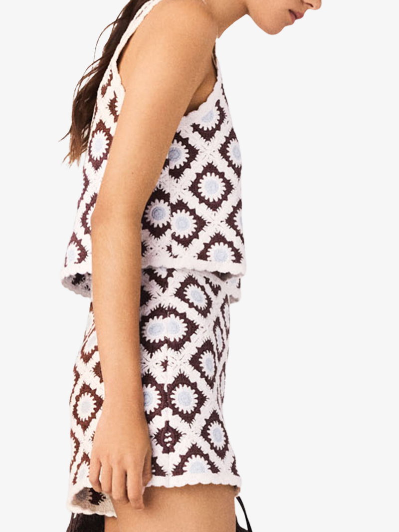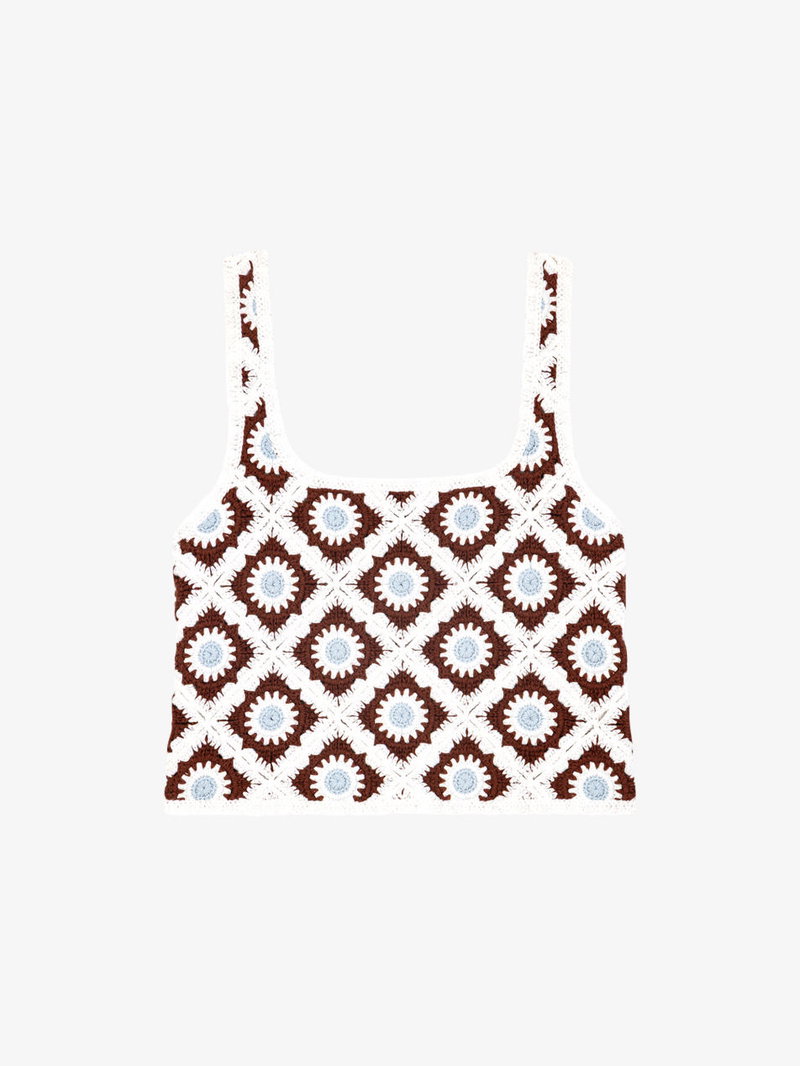 Maje crochet top. Regular fit, square-neck, sleeveless, cropped.