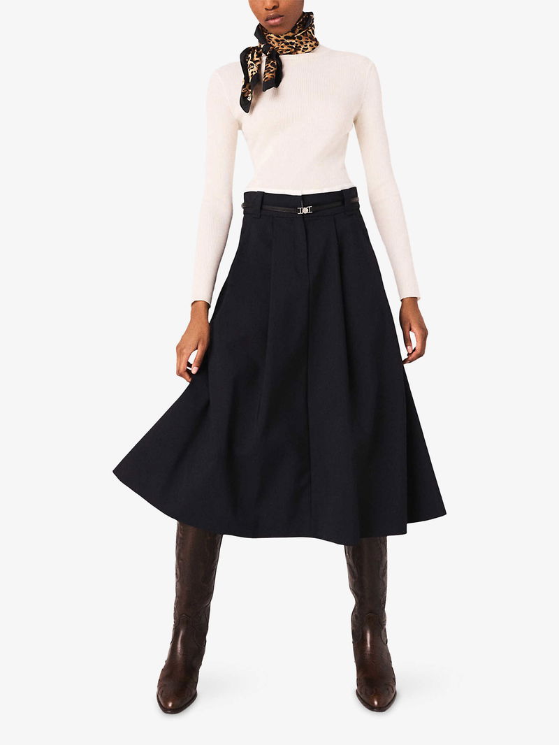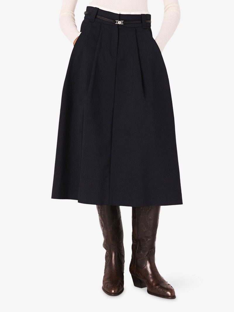 Shop More: Navy Clothing MAJE Clothing MAJE Skirts MAJE Midi Skirts Navy Skirts MAJE Navy Clothing Navy Midi Skirts