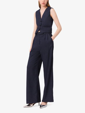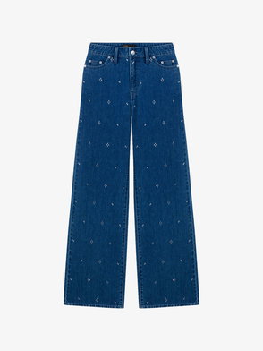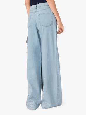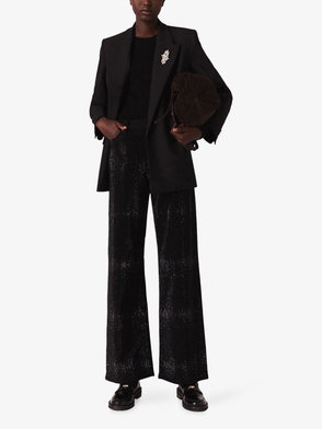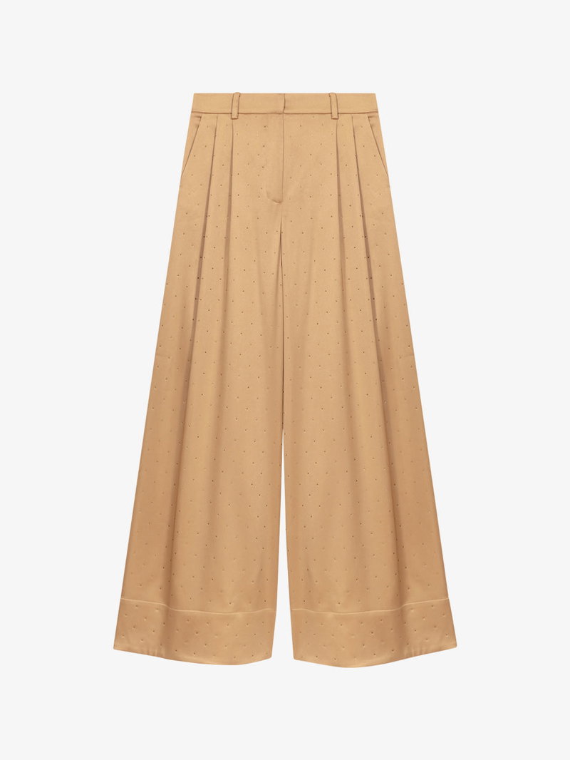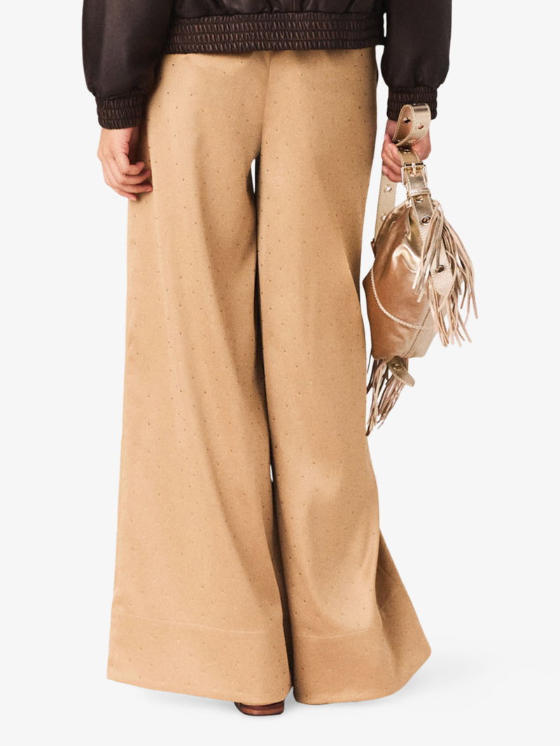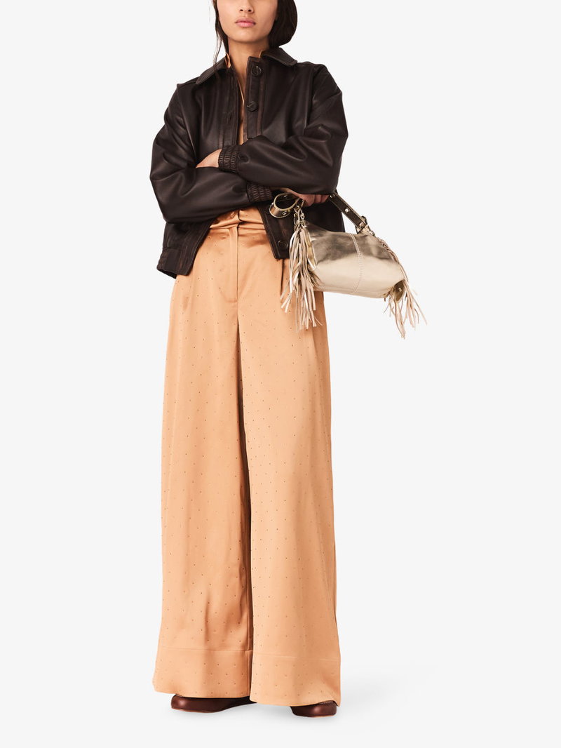 Rhinestone Wide-Leg Stretch-Satin Trousers