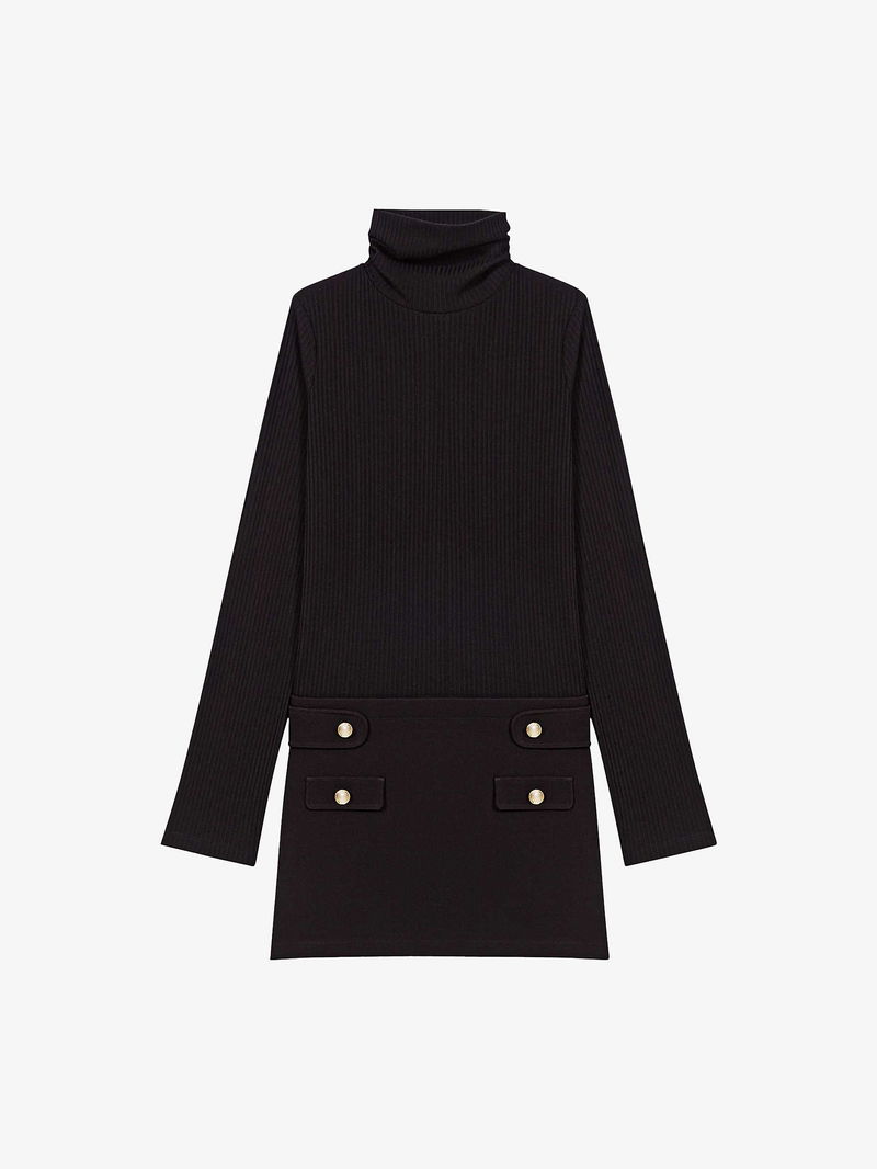 Ribbed High-Neck Stretch-Knit Mini Dress