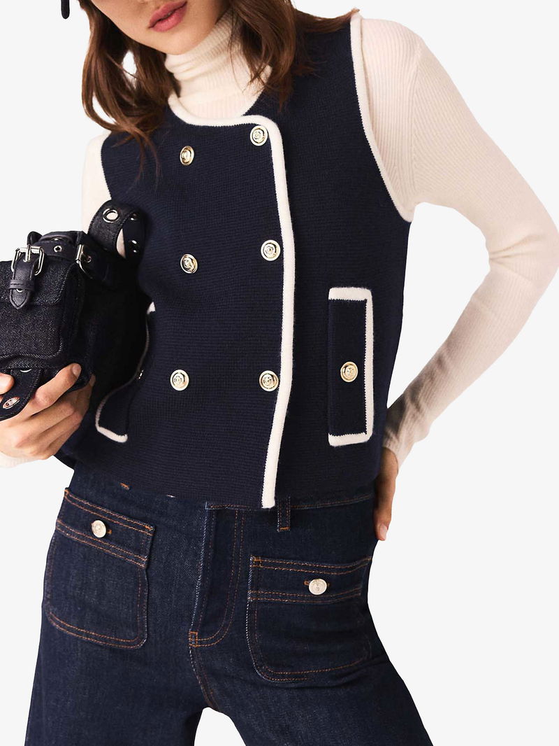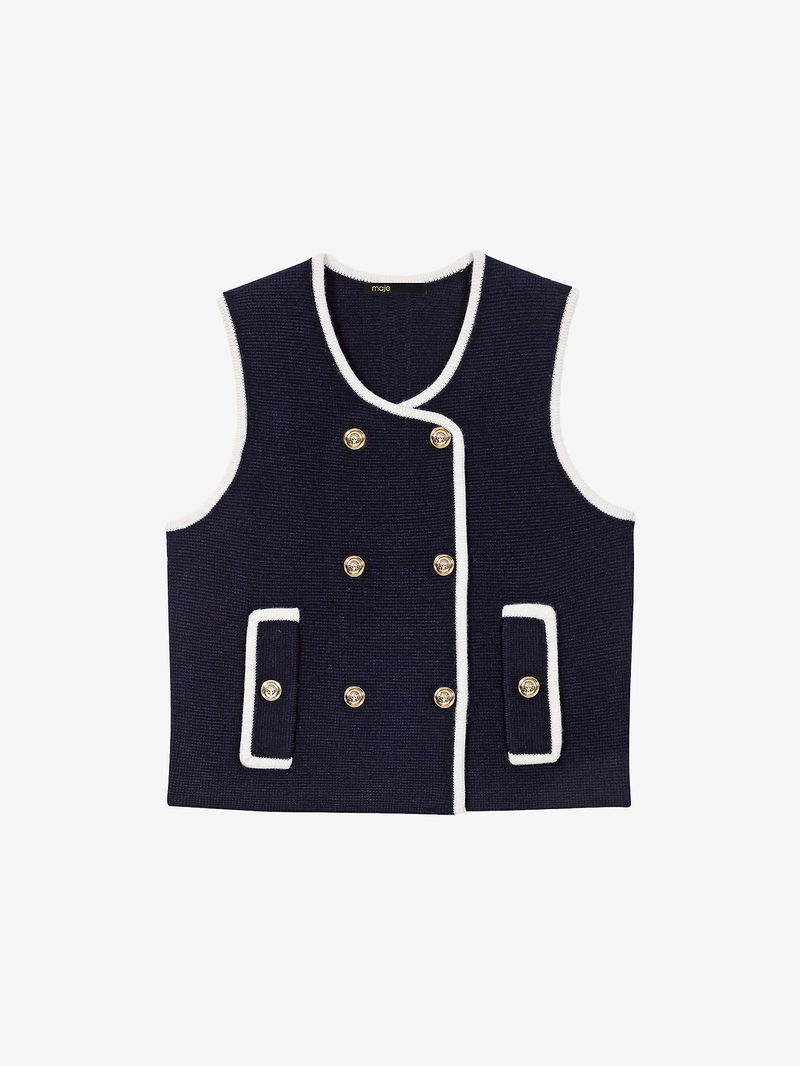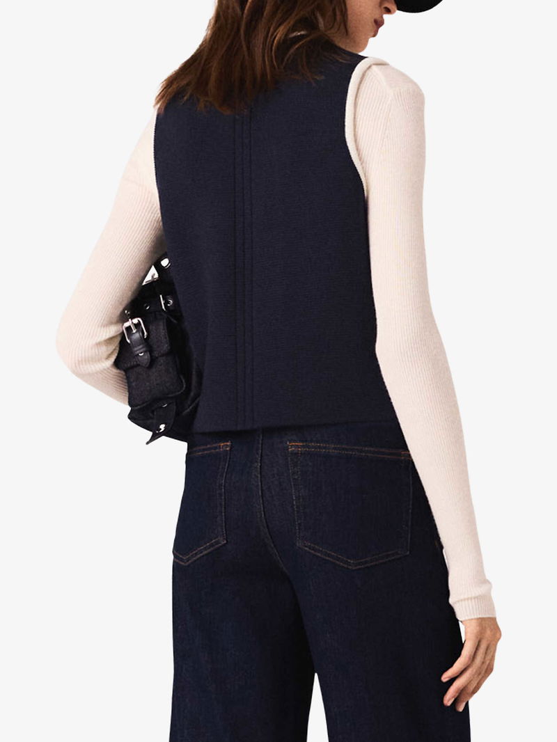 Sleeveless Double-Breasted Wool-Blend Top