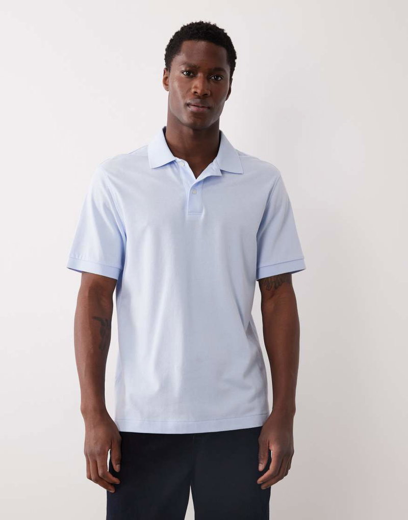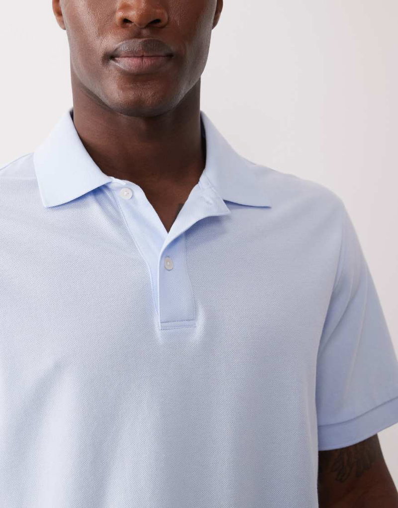 100% Cotton Short Sleeve Polo Top In Pale Blue