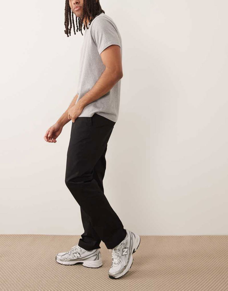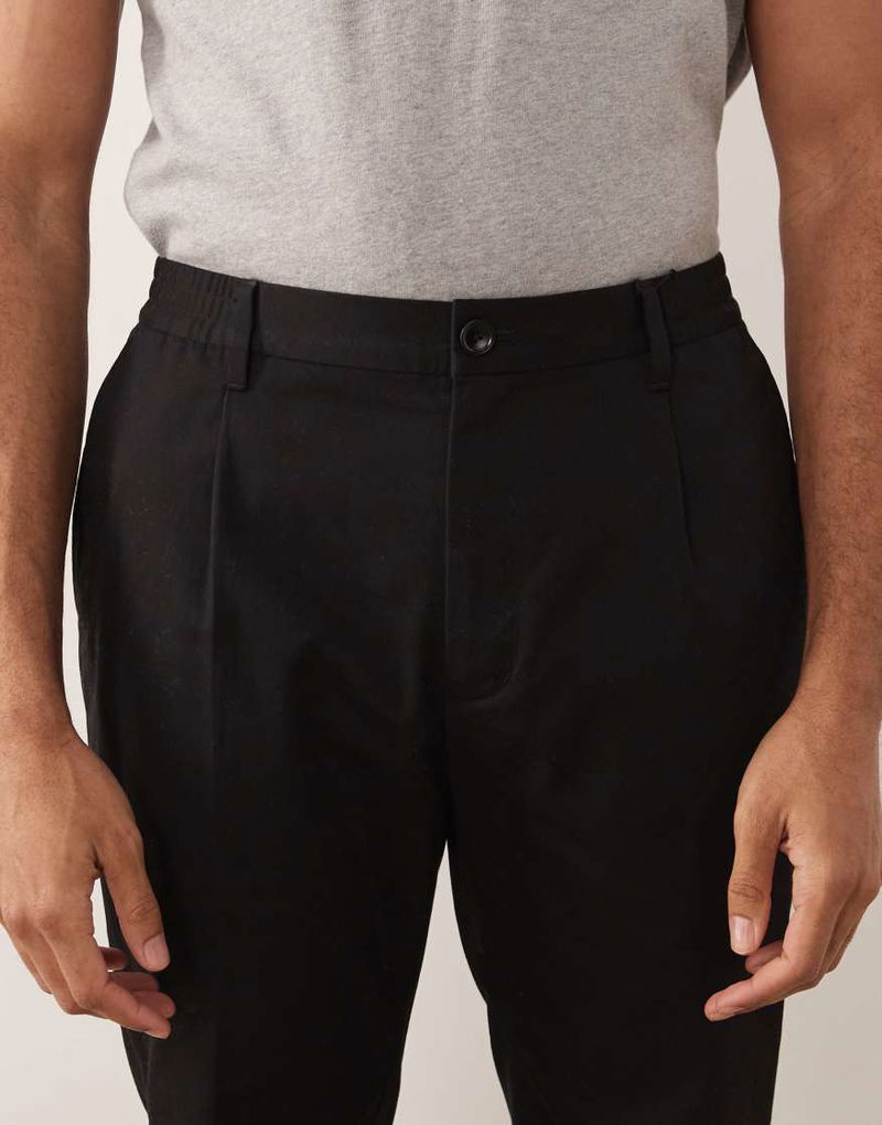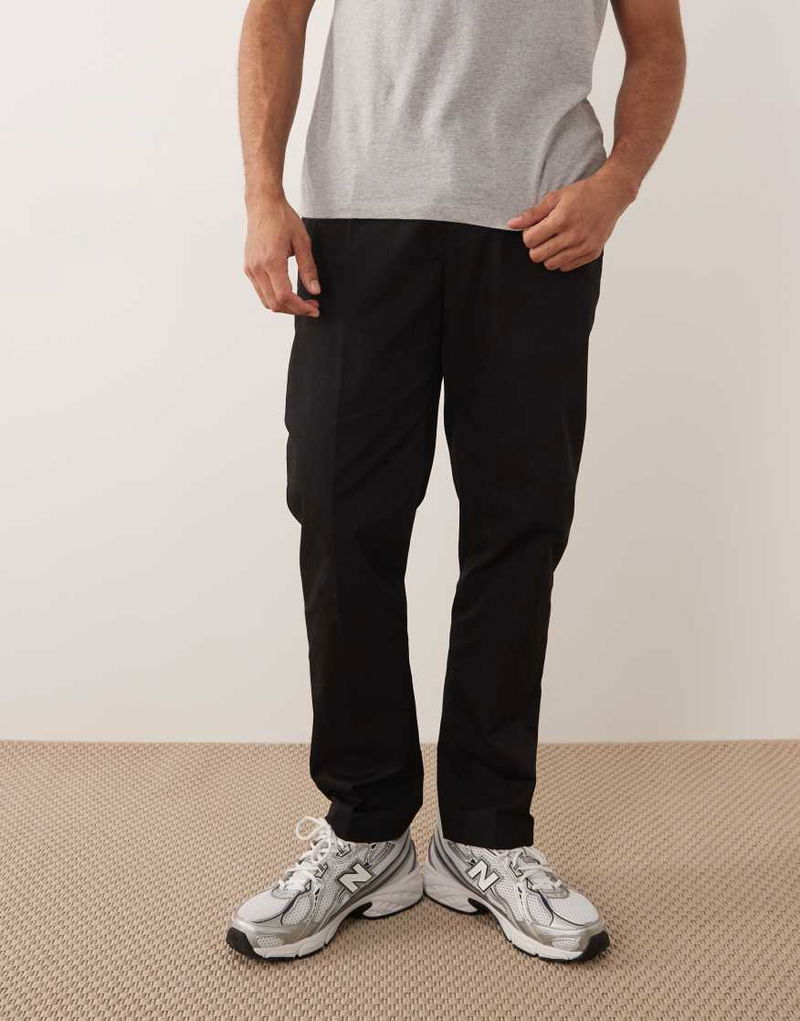 100% Cotton Straight Leg Adjustable Waist Trousers With Front Darts In Black
