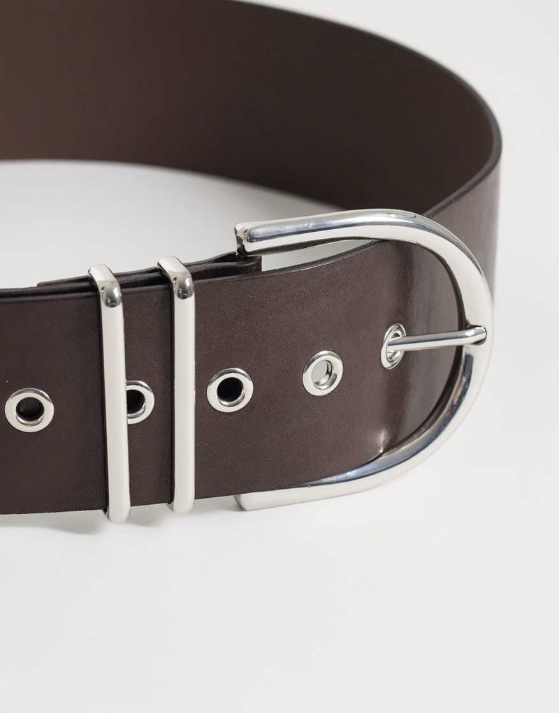100% Leather Belt With Silver-tone Buckle In Brown
