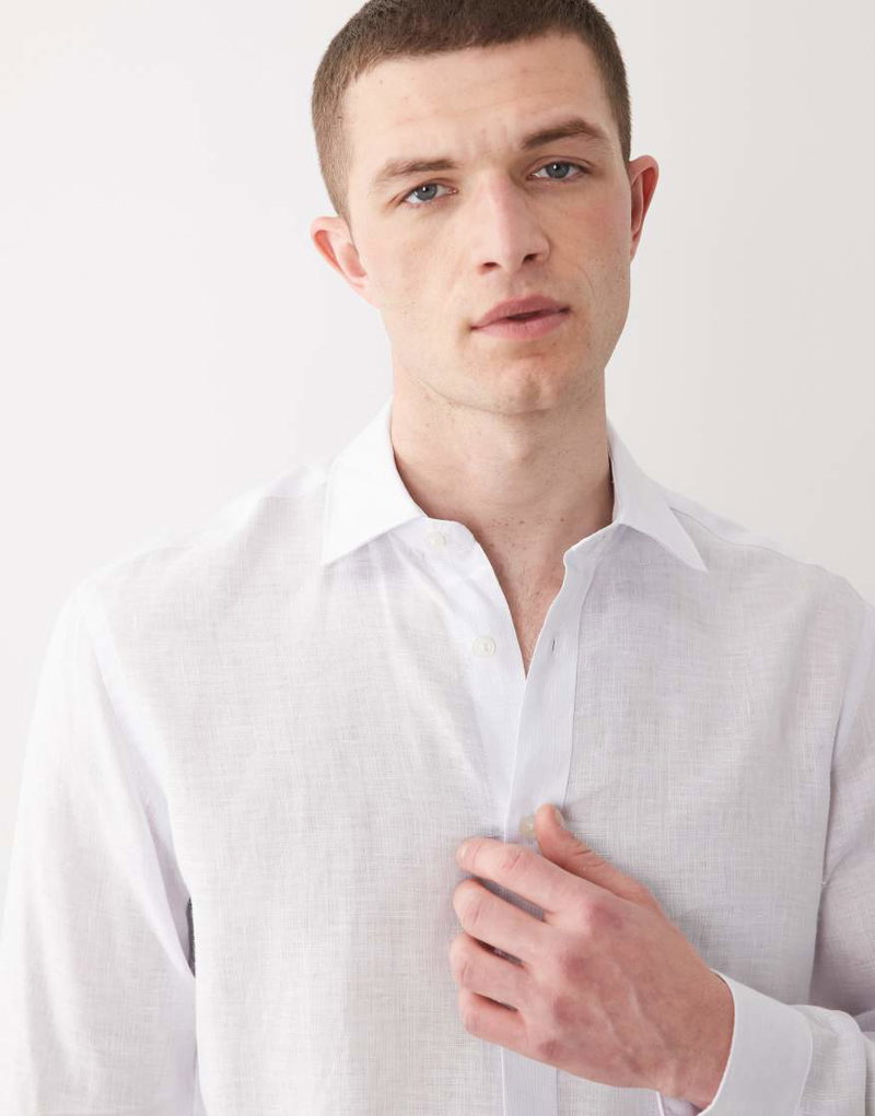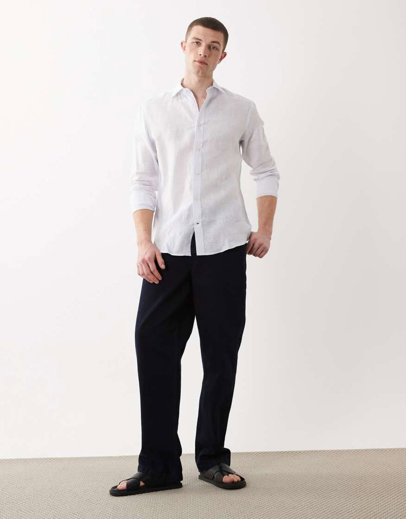 Made with at least 50% linen. Linen is made from the fibres of the flax plant. Flax is resilient and can grow in poor soil, using less water than cotton to produce.'
