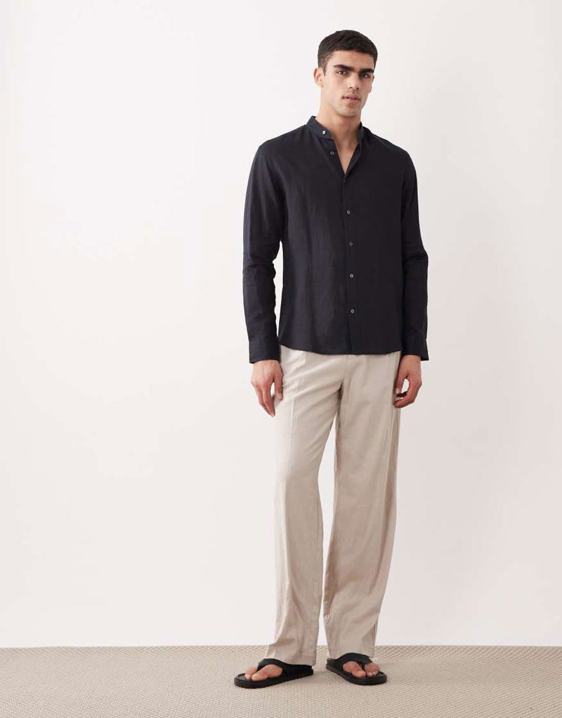 Made with at least 50% linen. Linen is made from the fibres of the flax plant. Flax is resilient and can grow in poor soil, using less water than cotton to produce.'