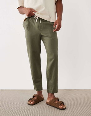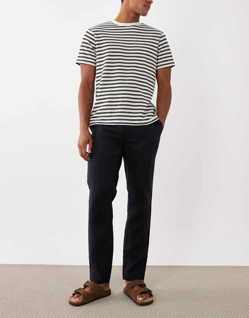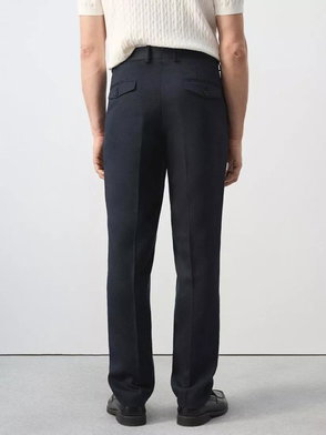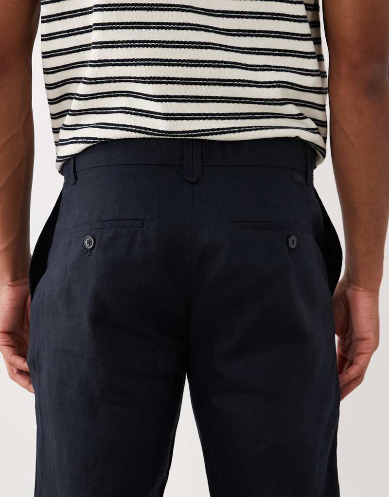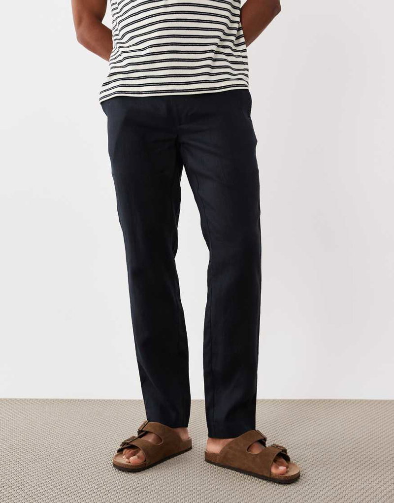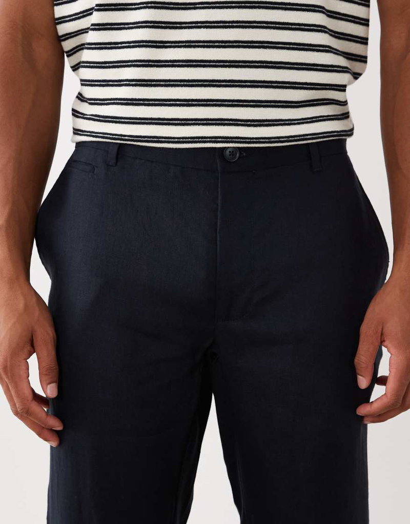 100% Linen Straight Fit Trousers In Navy