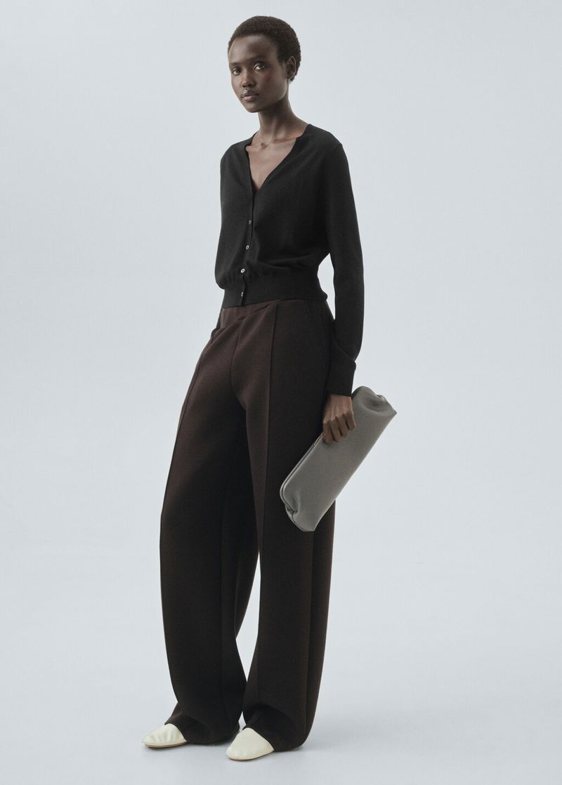 Crafted from 100% fine-knit merino wool fabric, this straight design features a V-neck and long sleeves. It has a front button fastening. Selection Collection