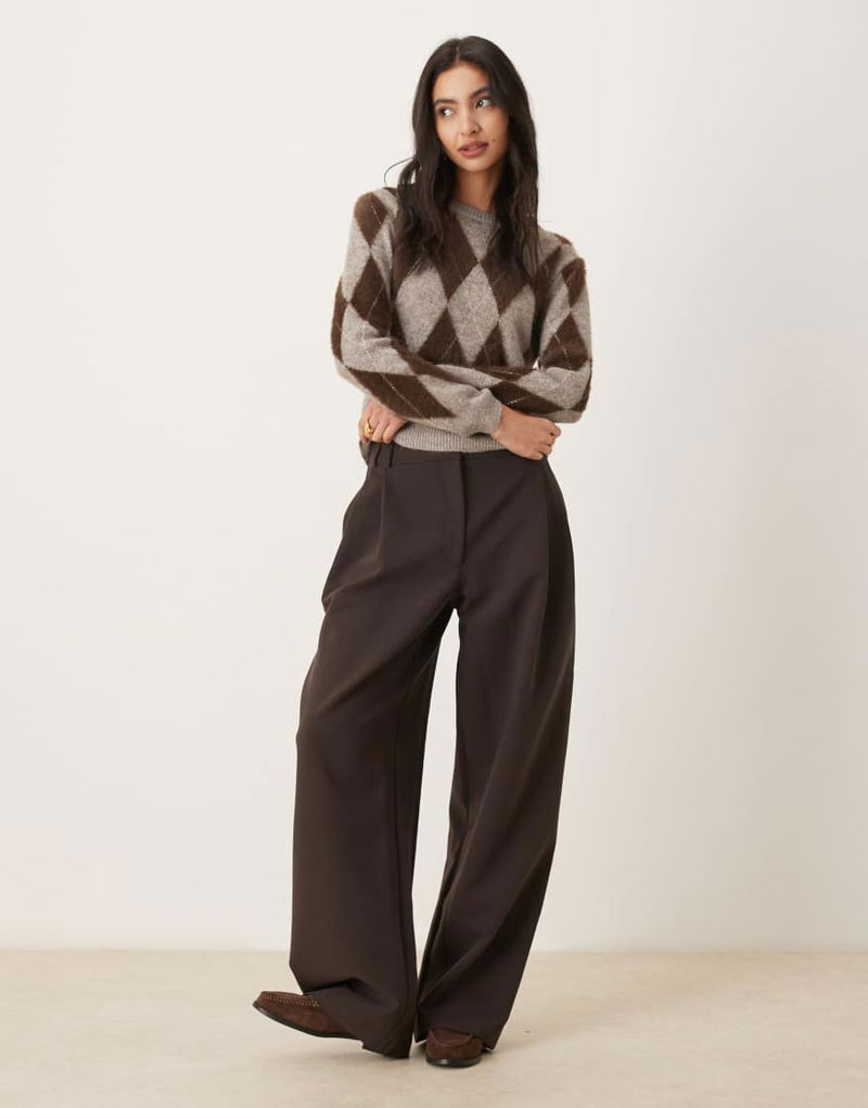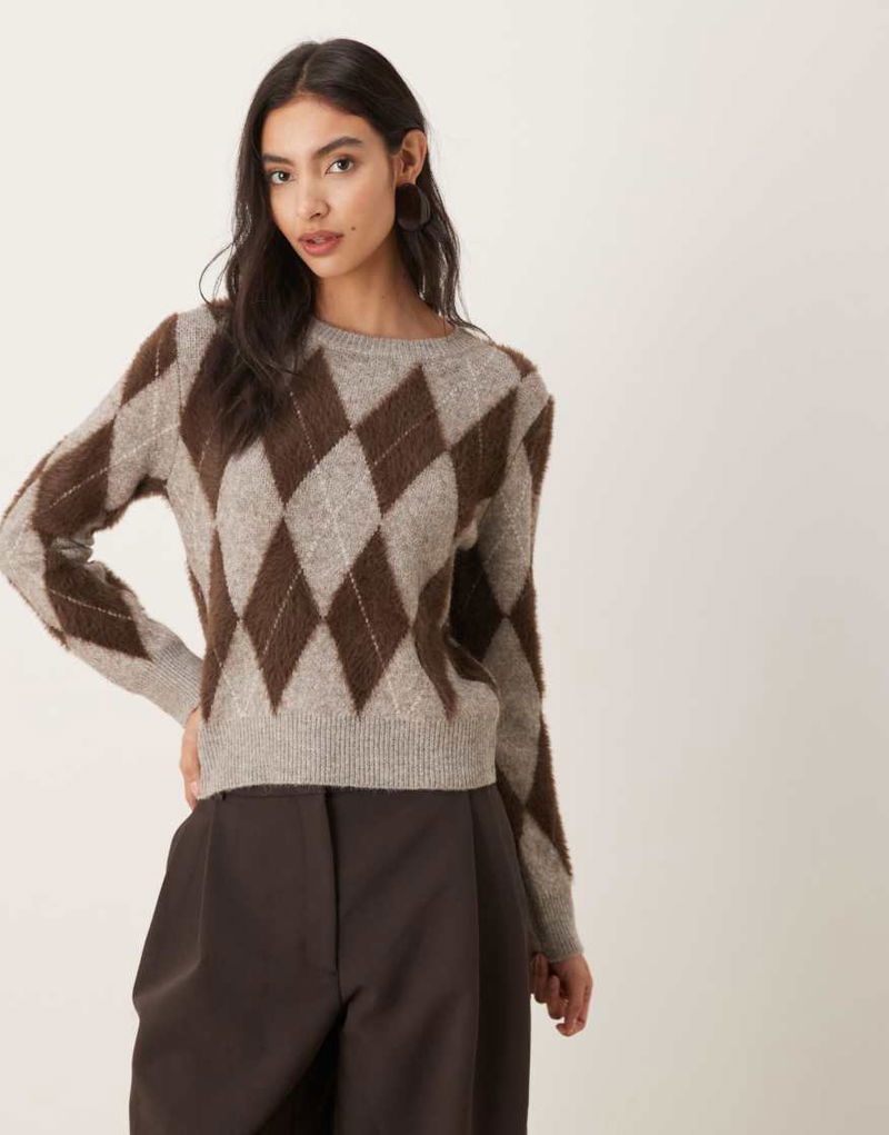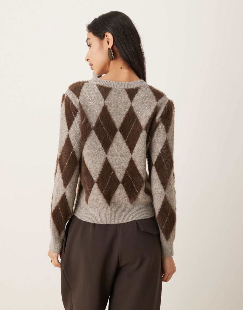 Argyle Round Neck Jumper In Grey And Burgundy