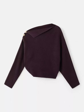 Asymmetric Button Detail Jumper In Burgundy