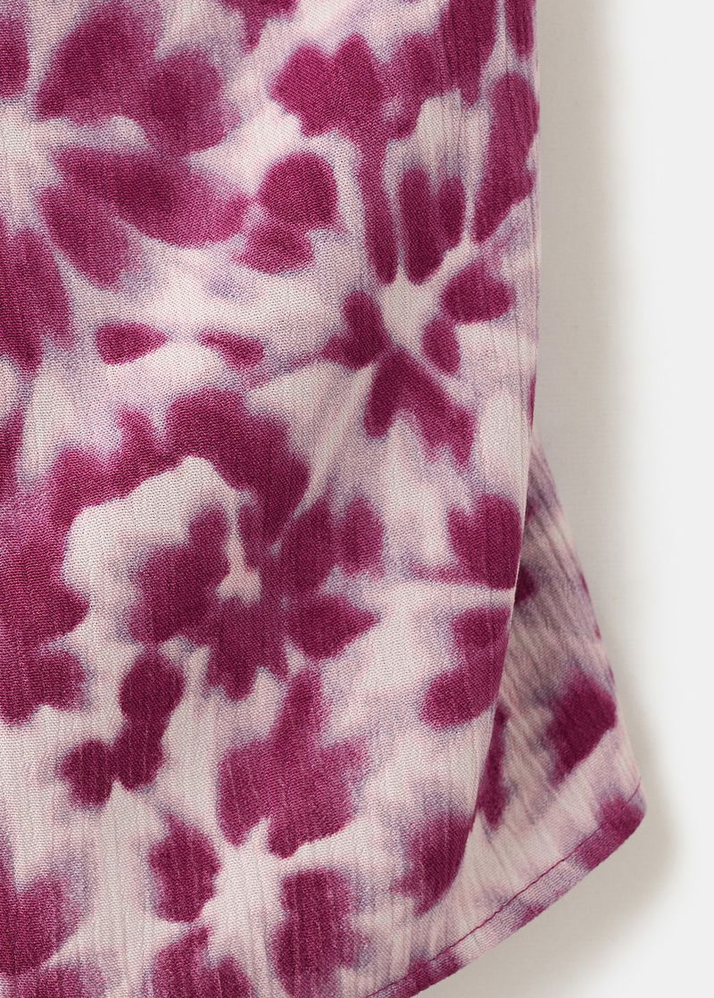 Fluid fabric. Asymmetric design. Printed design. Asymmetric neckline. Wide strap. Total look. Party and events collection.