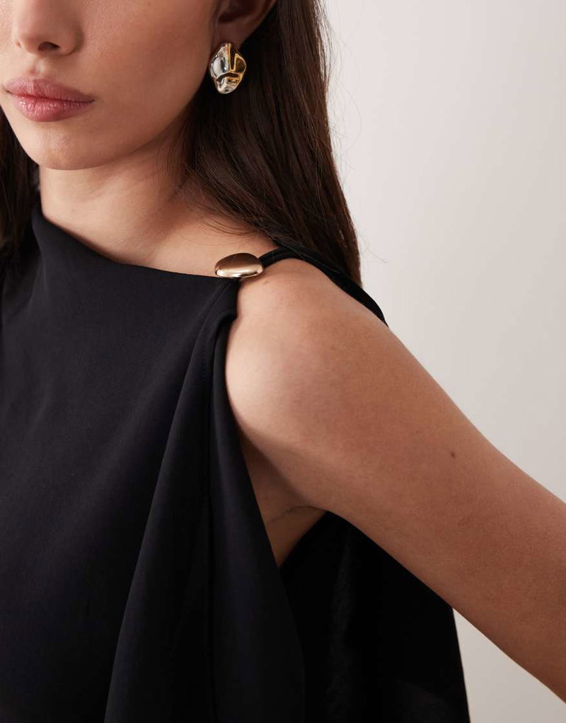 Asymmetric Sleeveless Top With Hardware Detail In Black