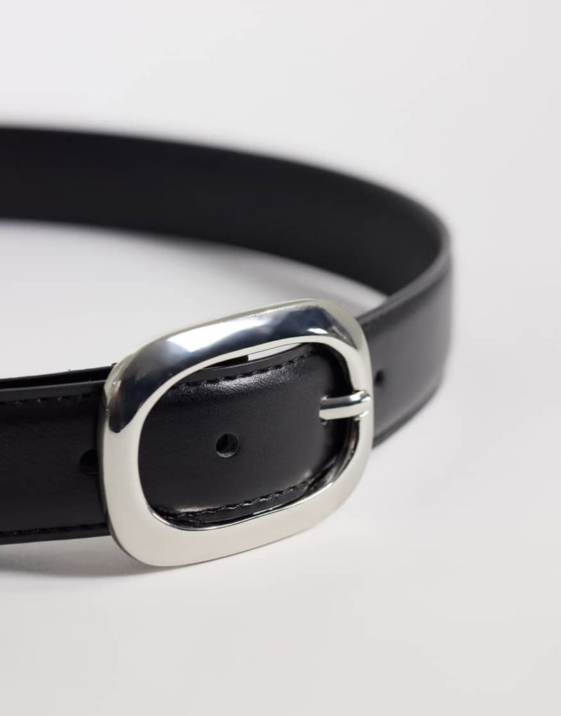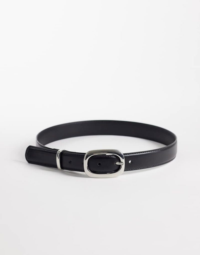 Belt With Oval Buckle Hardware In Black