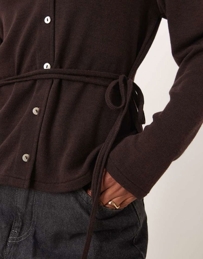 Belted Fine Cardigan In Chocolate Brown