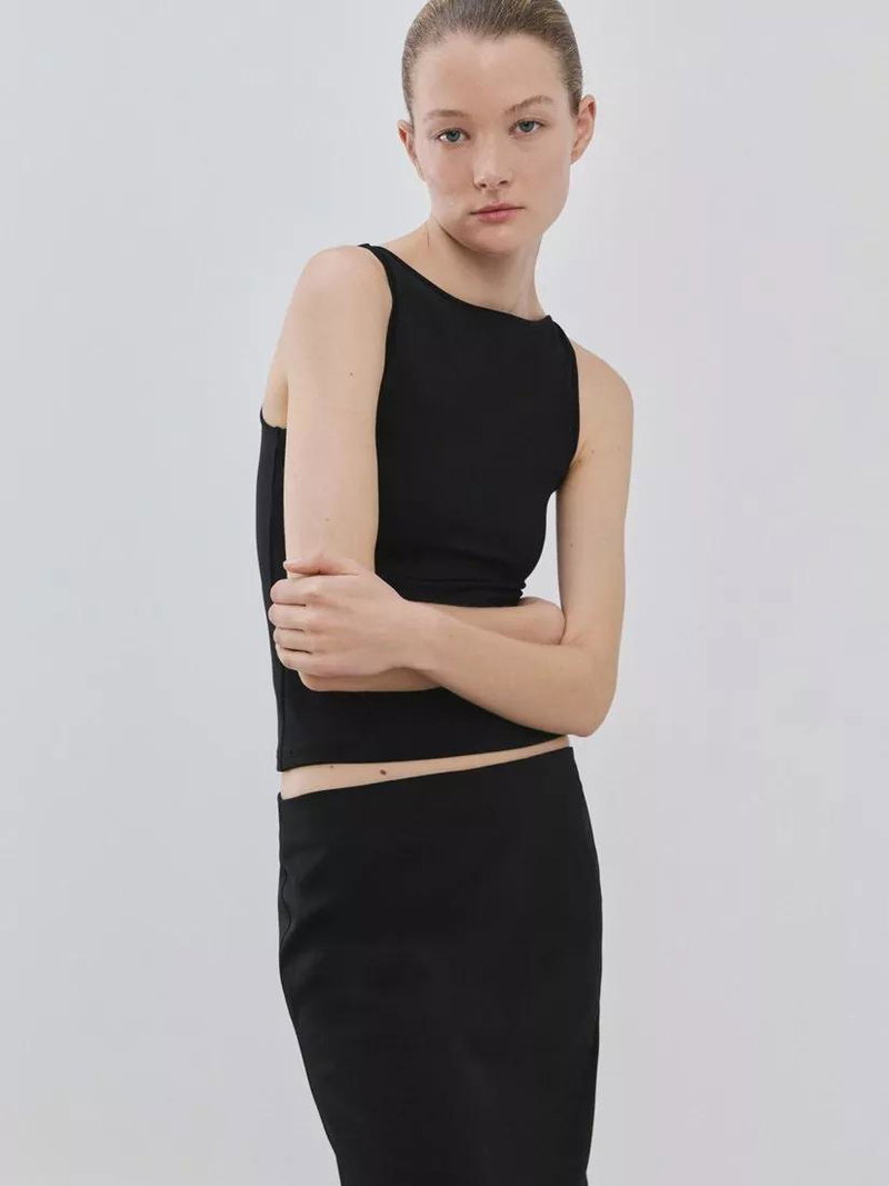 An athletic-inspired tank top with a round neck and clean, sleeveless finish, designed for easy layering or wearing solo on busy days. Its supportive stretch offers comfort and confidence.