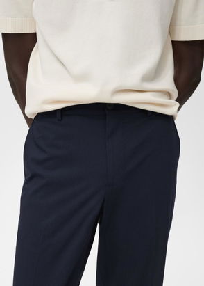 Tailoring collection. Regular fit. Crop design. Darts on the front. Two side pockets. Two-coin pockets. Two welt pockets with button at the back. Cuffed hem. Button, hook and zip closure.