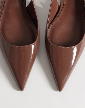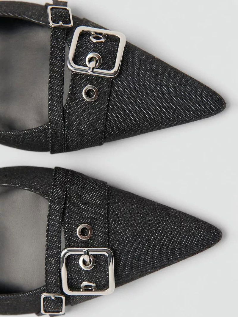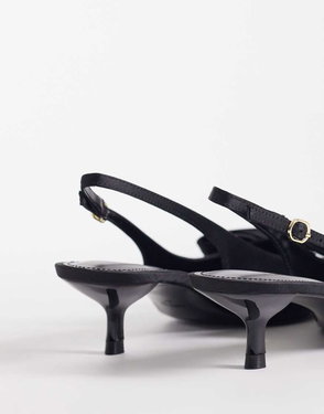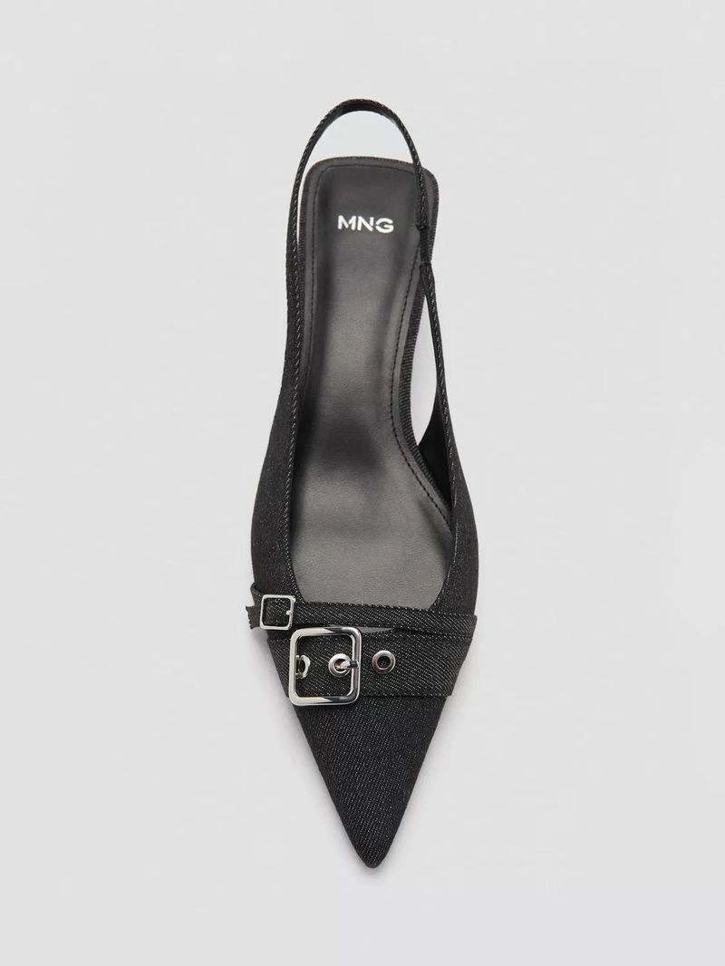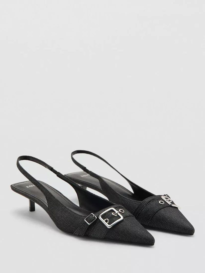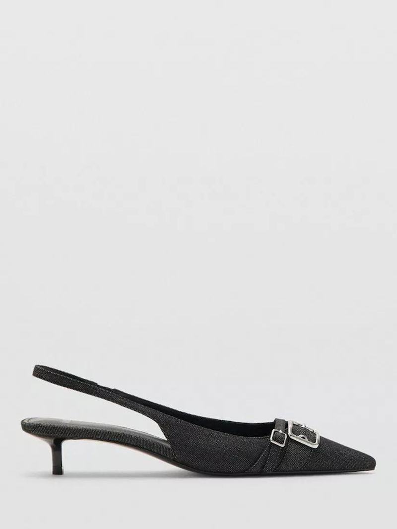Mango textured slingback pumps. With a closed, pointed toe and mid kitten heel, the playful design with polished buckle detailing keeps you comfortable.