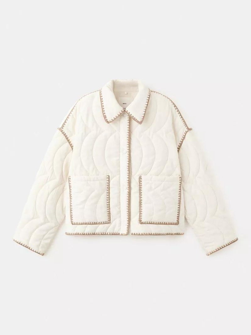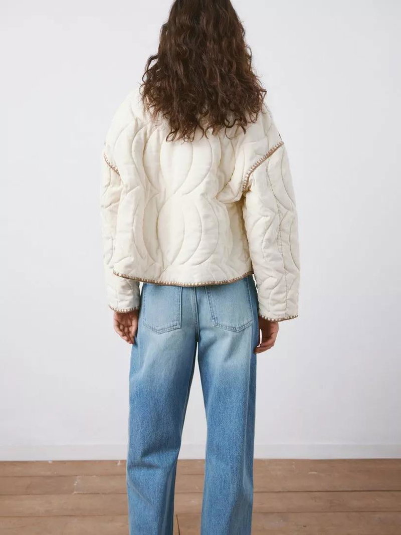 Chaqueta Contrast Stitch Quilted Jacket, Beige