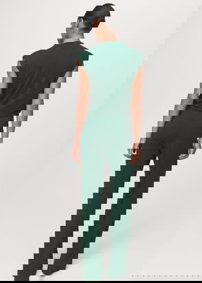 Combined-fabric Jumpsuit With Belt