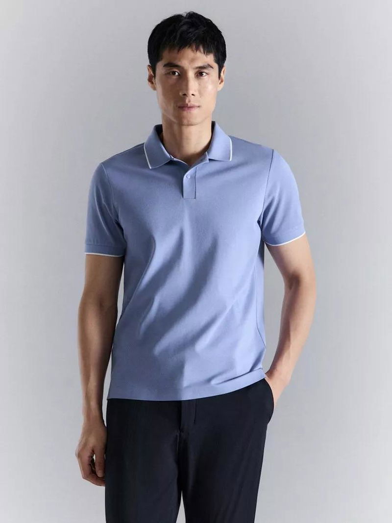 Cotton Blend Regular Fit Short Sleeve Polo Shirt, Porcelain