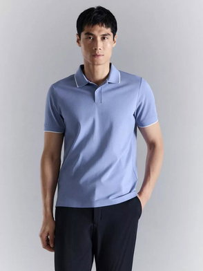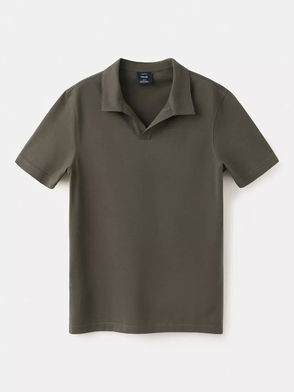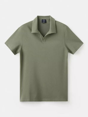 Cotton Blend Slim Fit Open Collar Polo Shirt