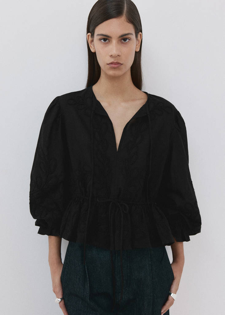 Cotton Blouse With Floral Embroidery