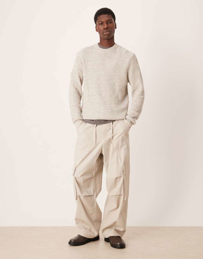 Cotton Chunky Knit Crew Neck Jumper In Natural