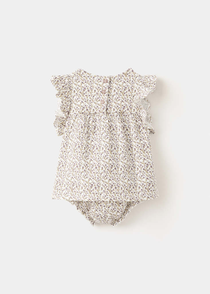 Cotton Dress And Romper With Floral Print