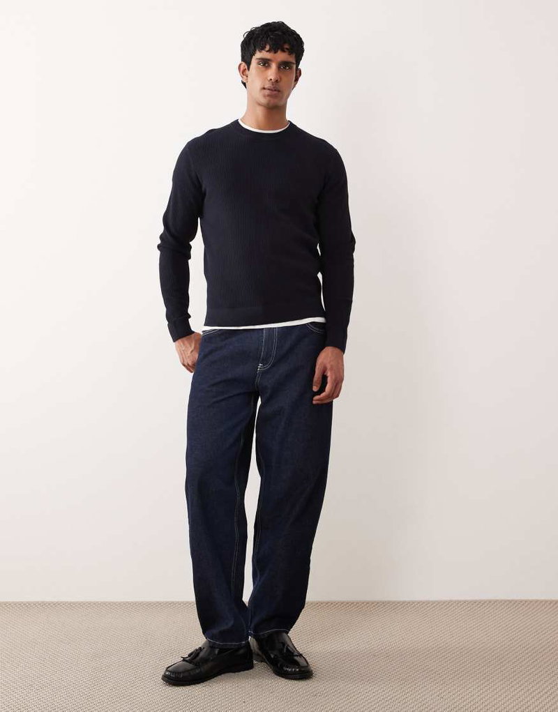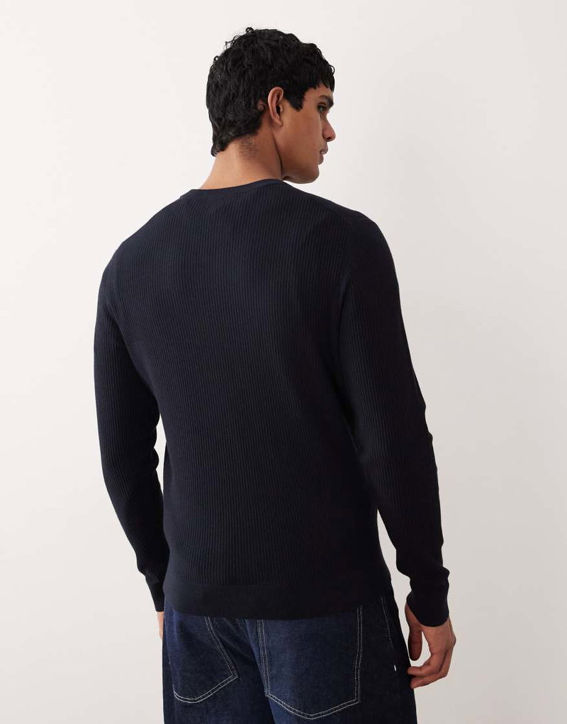 Cotton Mix Crew Neck Sweater In Navy