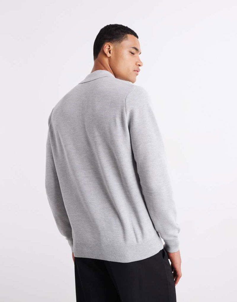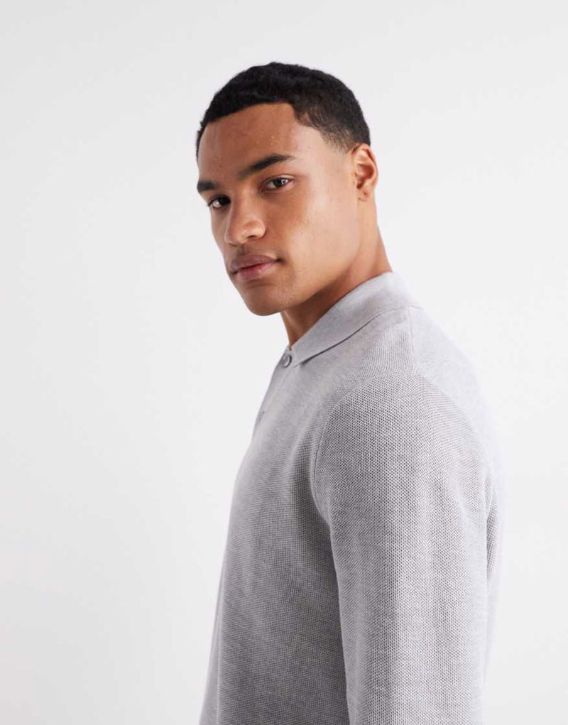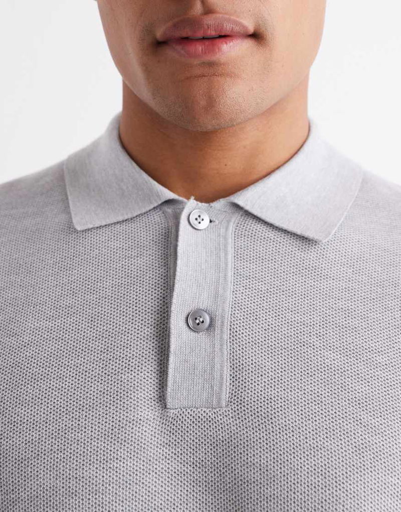 Cotton Mix Knit Long Sleeve Polo In Gray