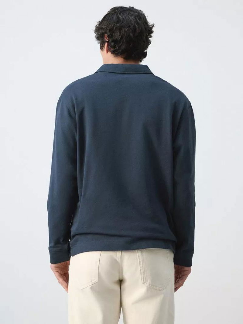 Cotton Regular Fit Long Sleeve Polo Shirt, Navy