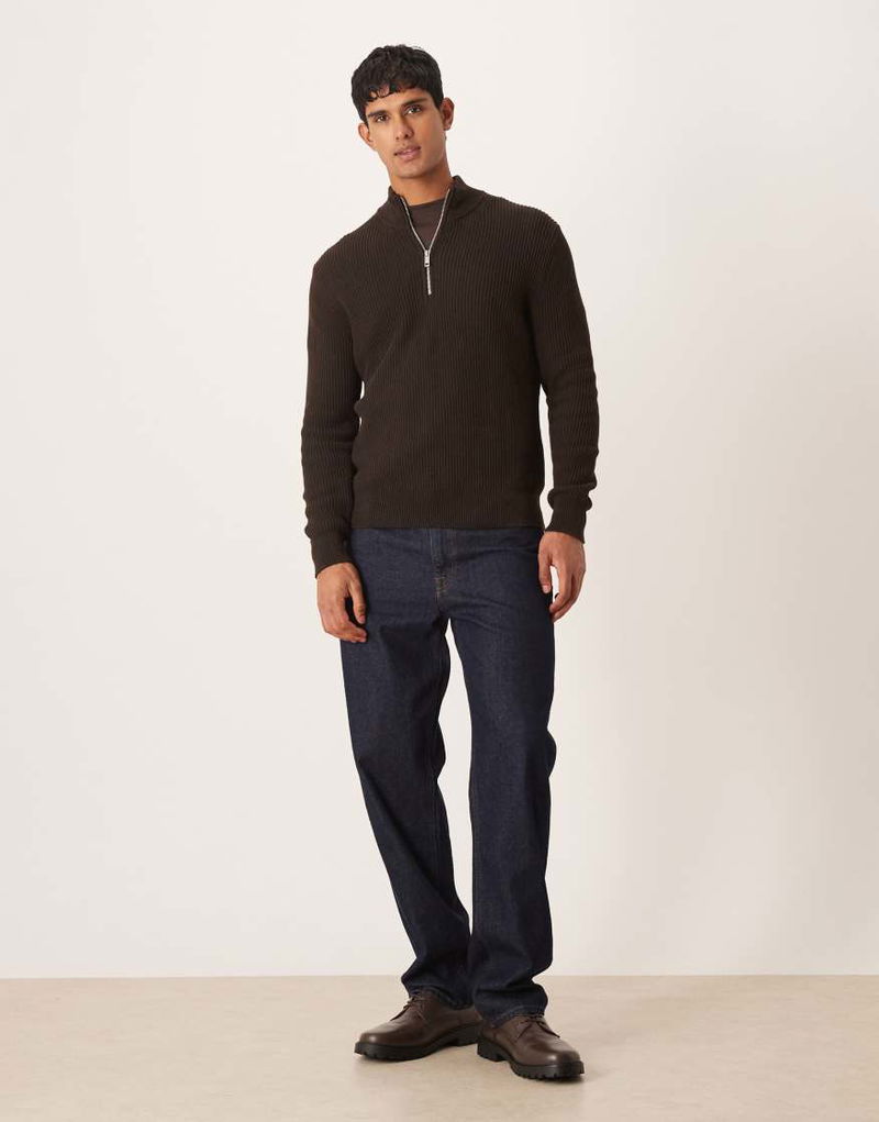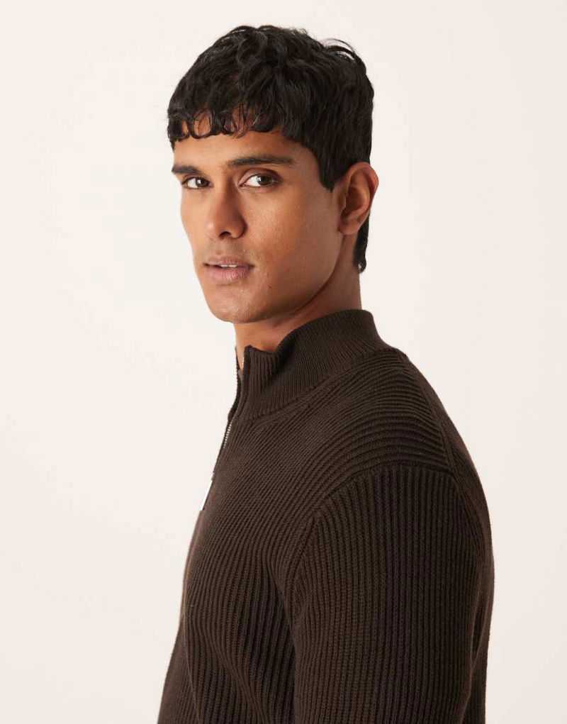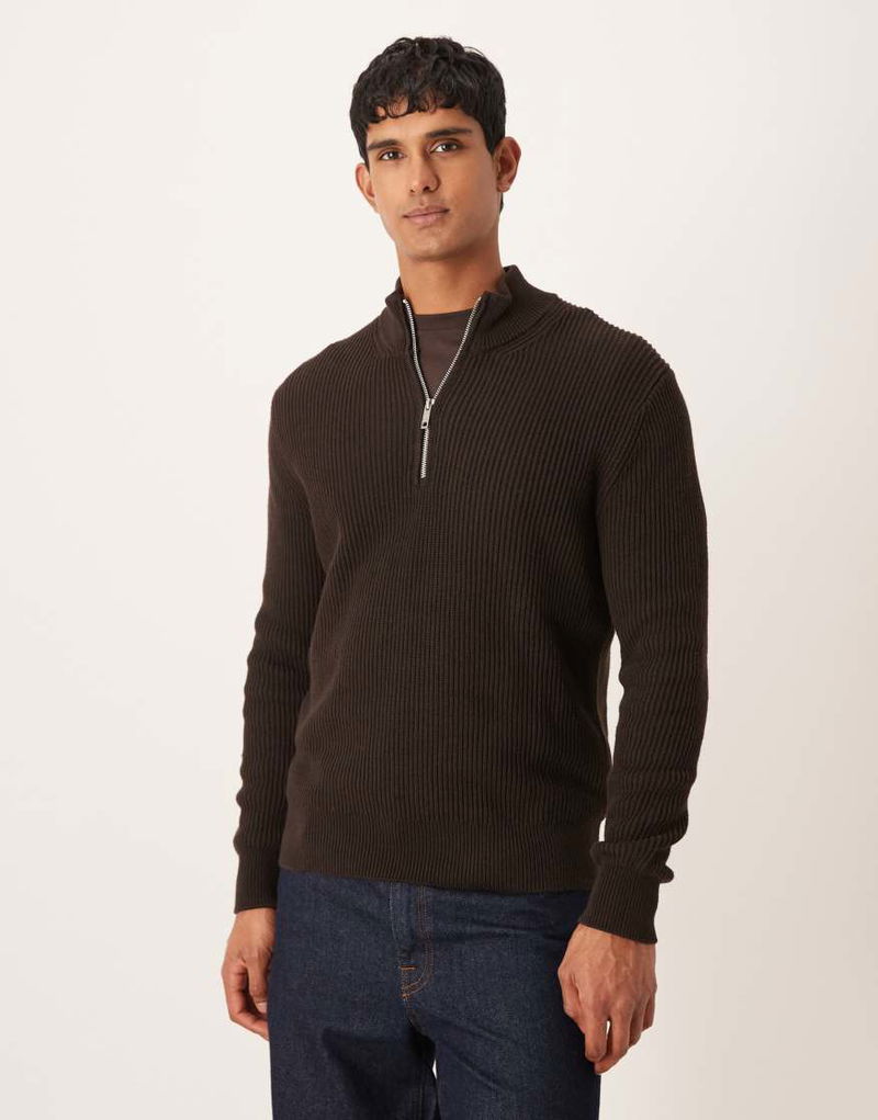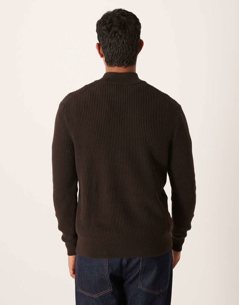 Cotton Ribbed Quarter Zip In Brown