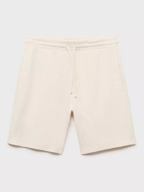 Cotton-blend fabric. Straight silhouette. Seersucker effect. Elastic waist with drawstring. Side pockets. One patch pocket on the back. Set available as total look.