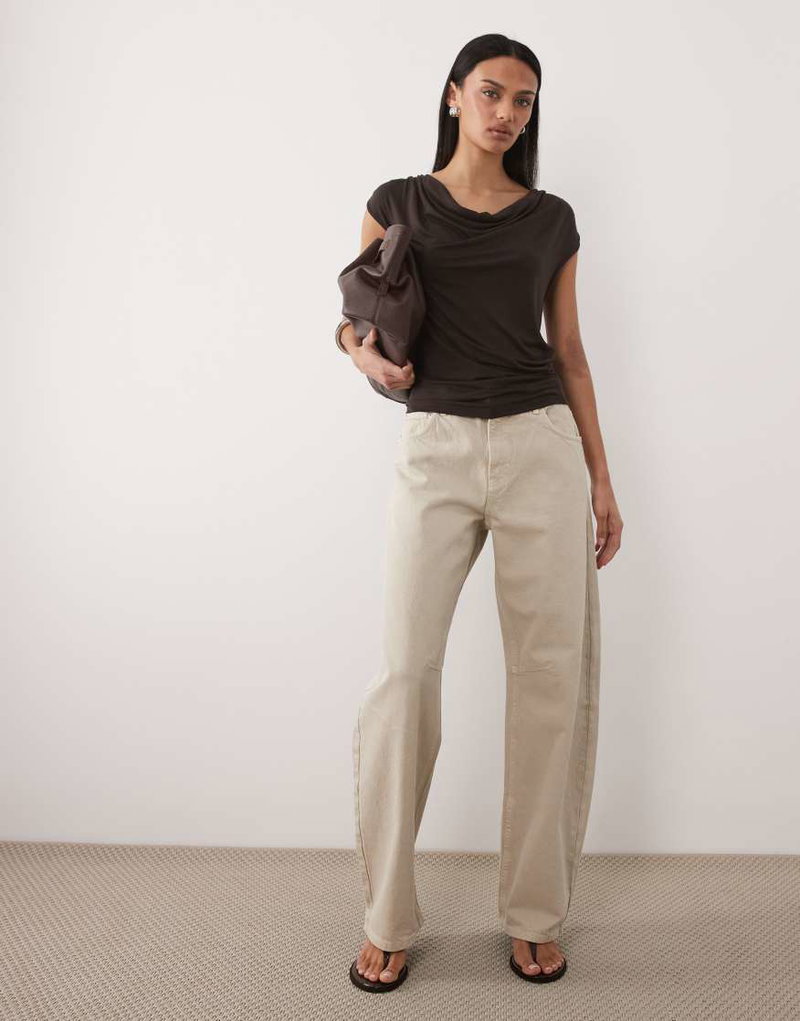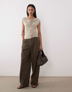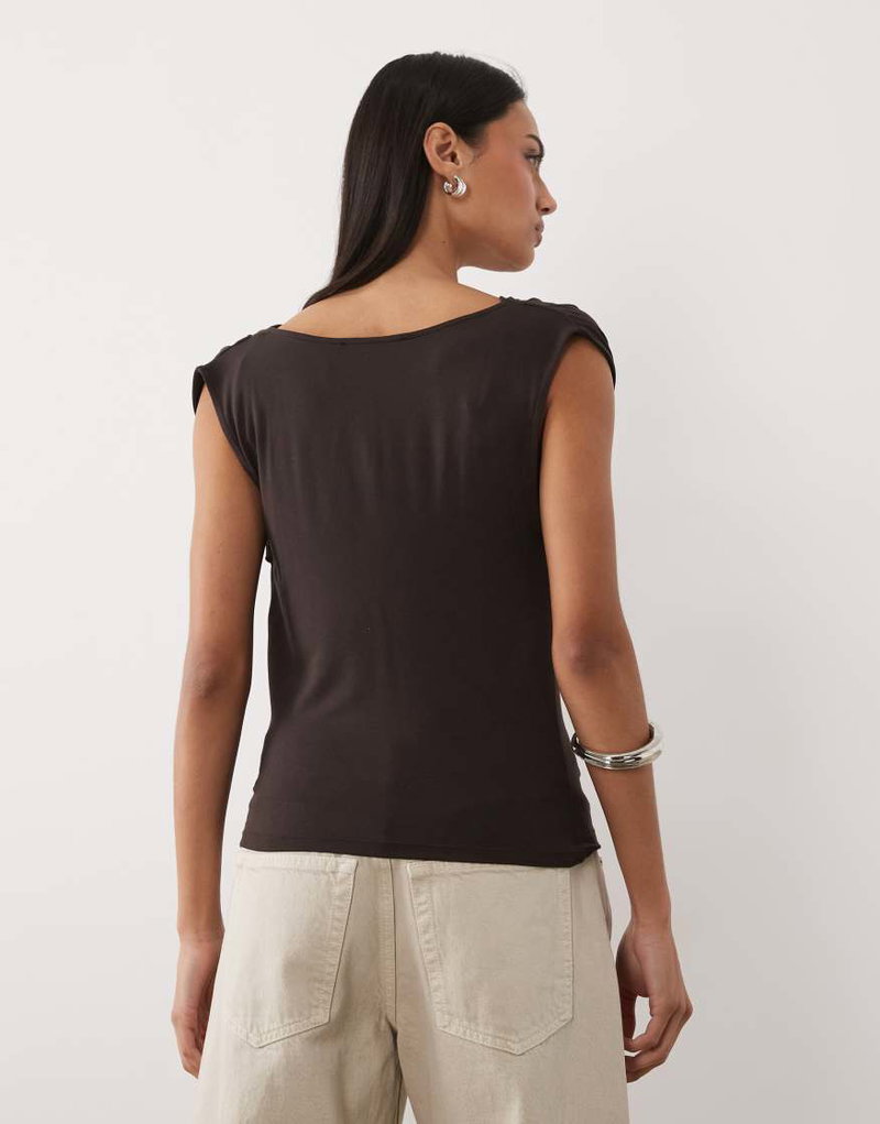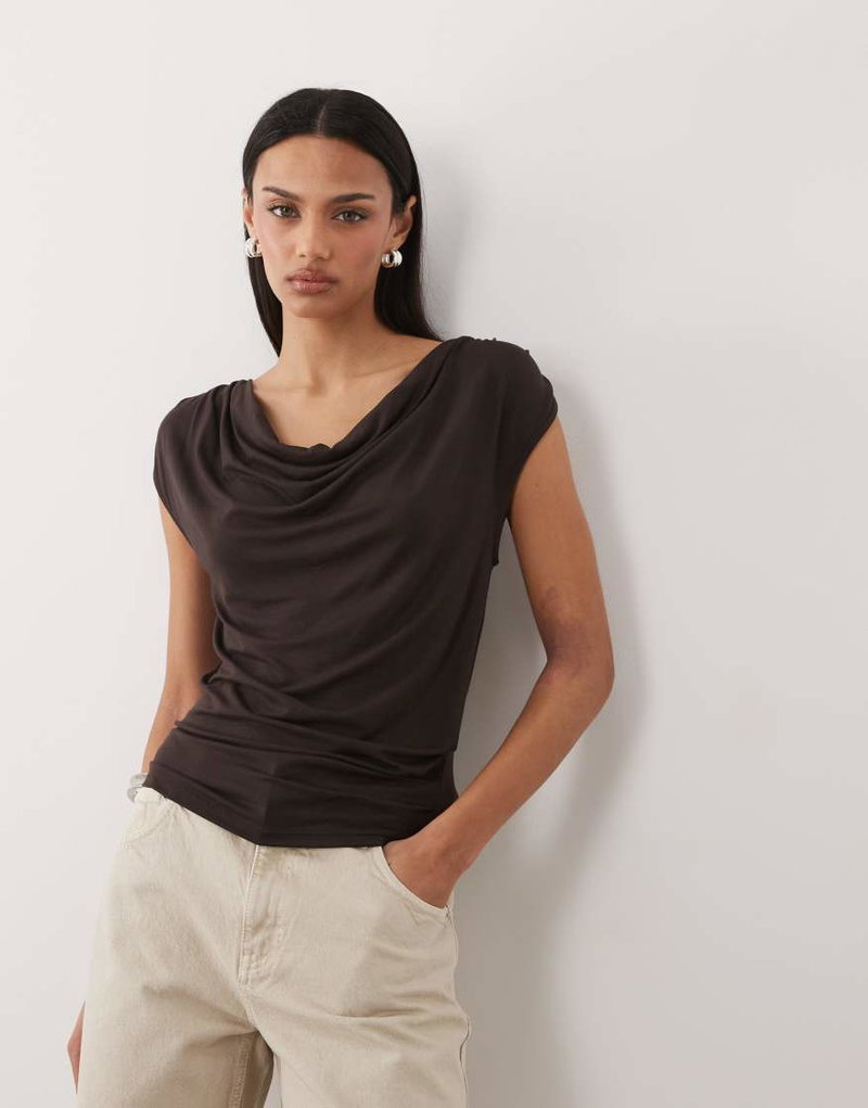 Cowl Neck Sleeveless Top In Brown
