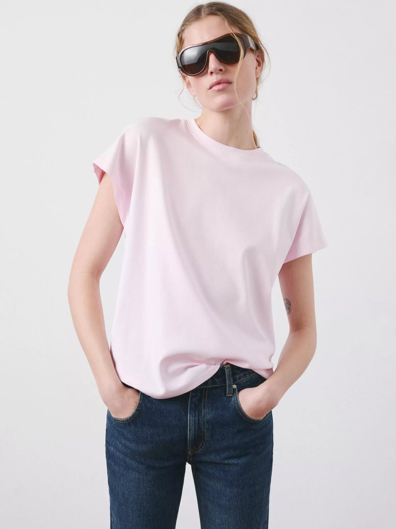 Crew Neck Relaxed T-Shirt, Pastel Pink