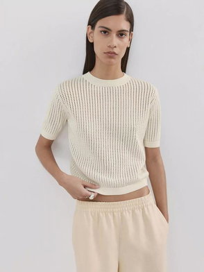 Crew Neck Short Sleeve Jumper, Off White