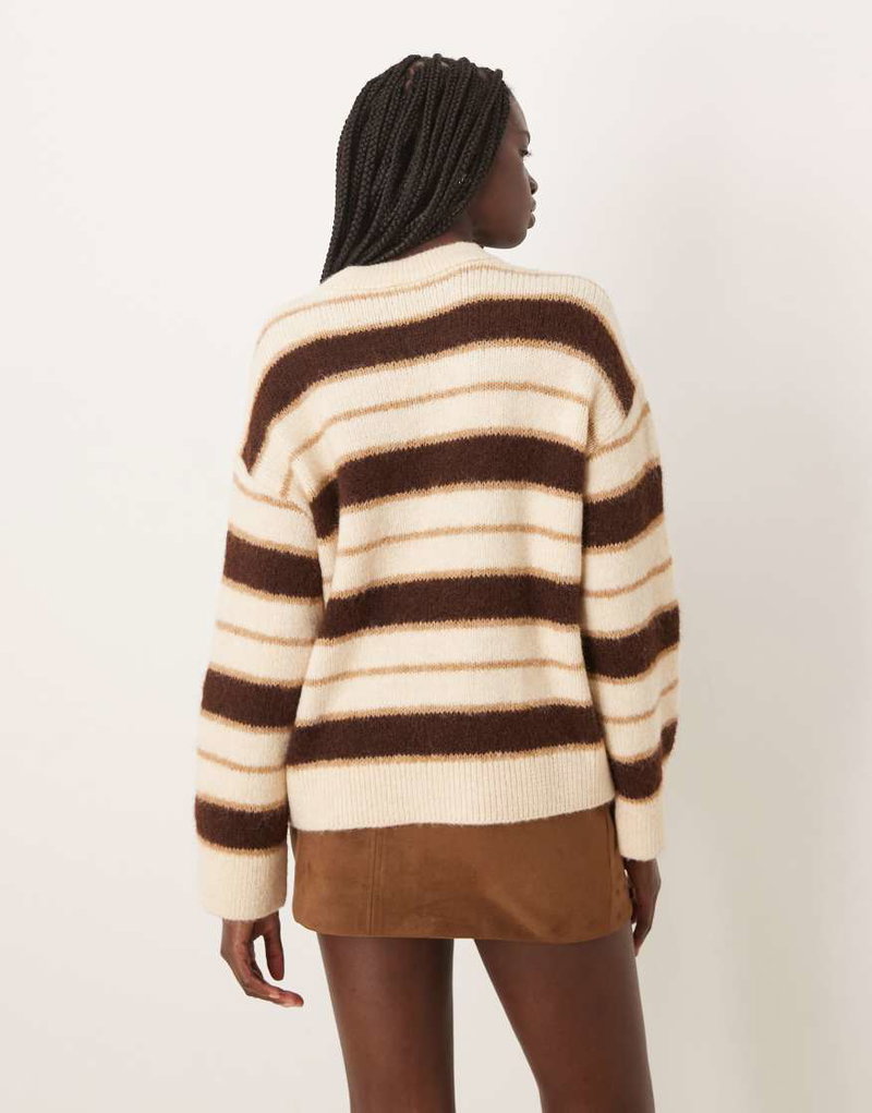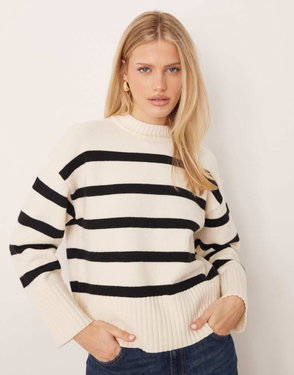 Crew Neck Sweater In Beige Stripe