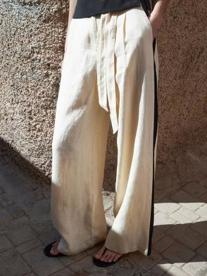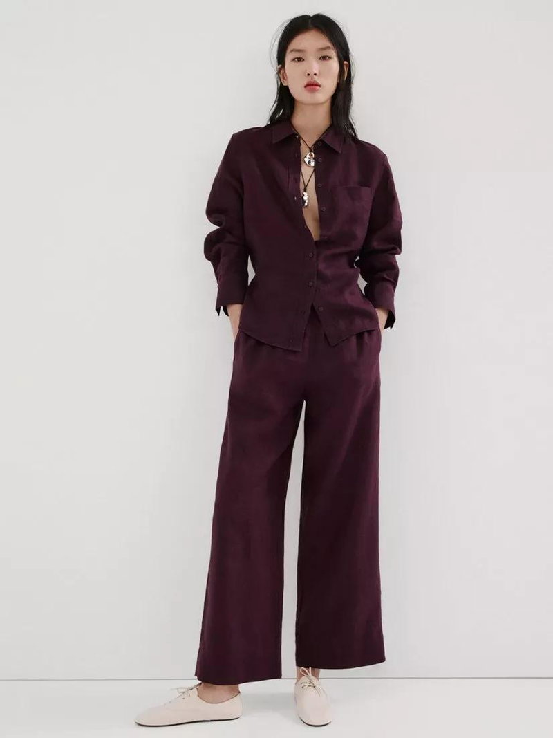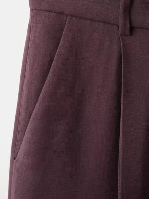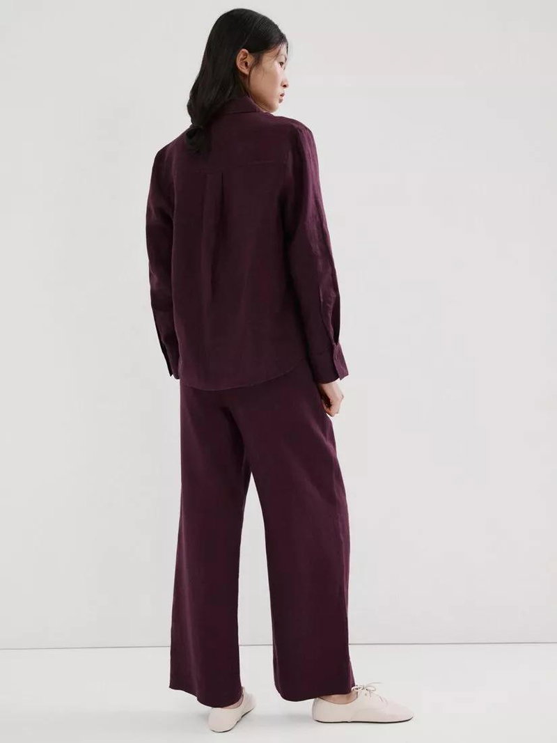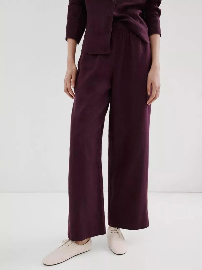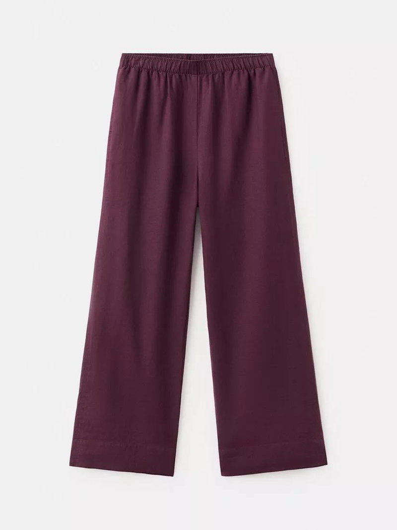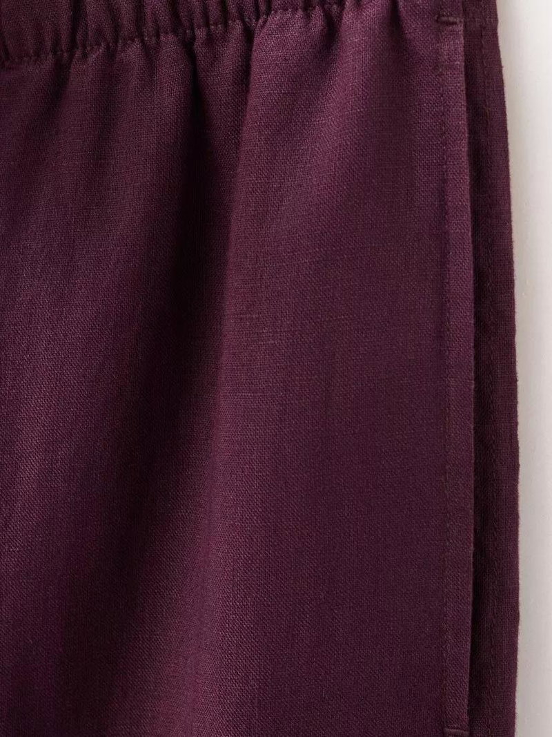 Elastic Waist Wide Leg Linen Trousers, Purple