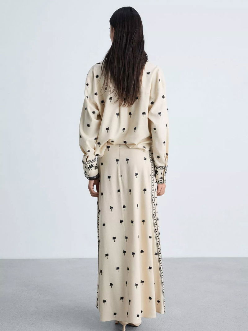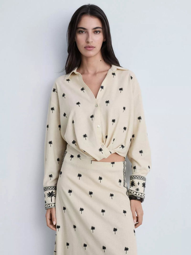 A classic flared shape, this maxi skirt from Mango is scattered with a palm print. Crafted from a soft linen blend, it's a style that's made to work in tandem with your capsule edit.