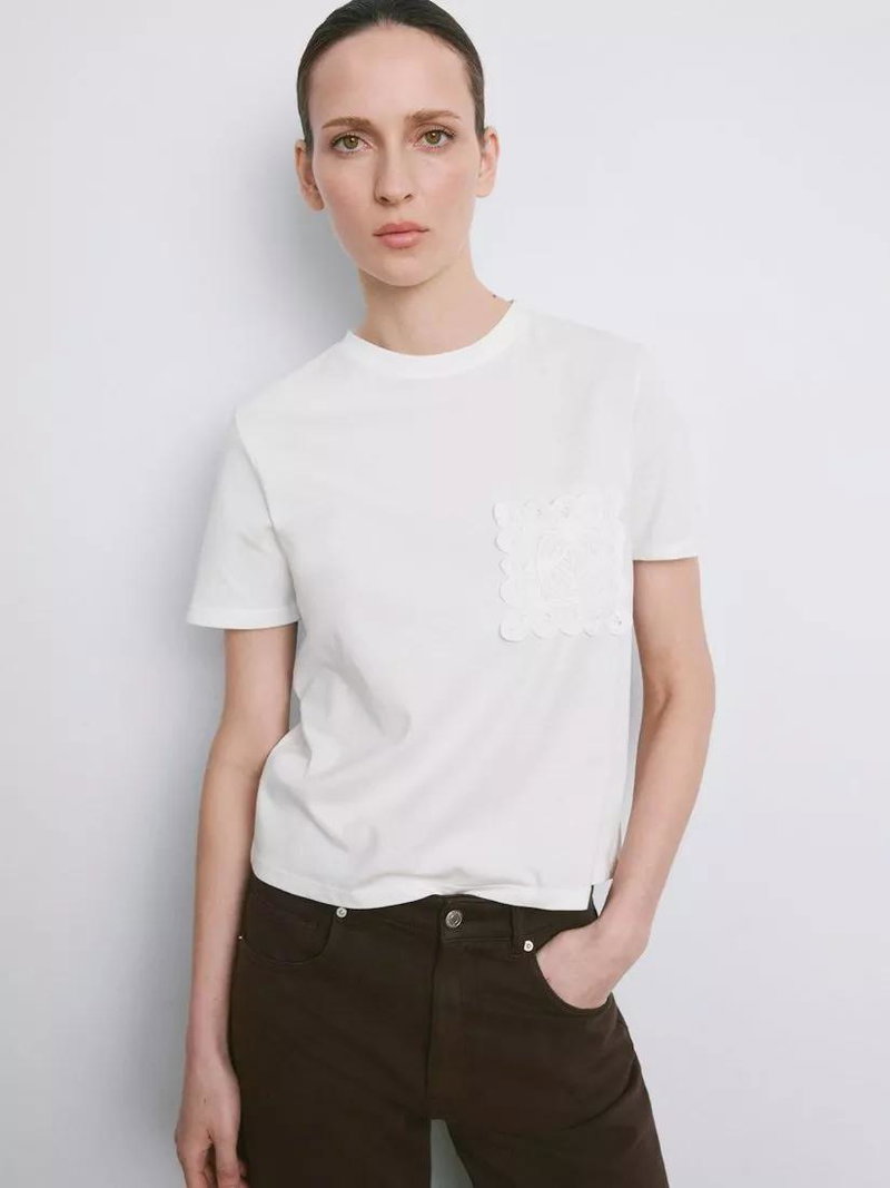 Embroidered Pocket Crew Neck T-Shirt, Off White