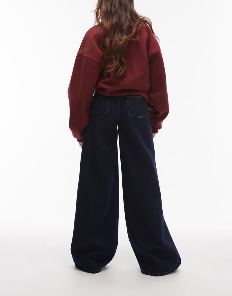 Wide leg High rise Belt loops Concealed fly Functional pockets.