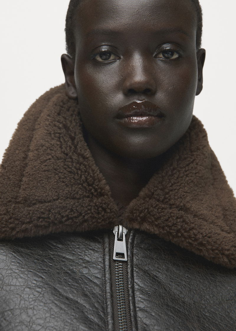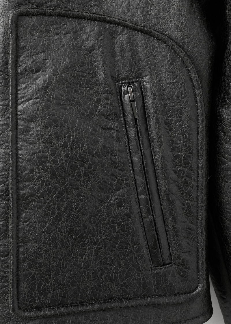 Faux Leather Jacket With Shearling Collar