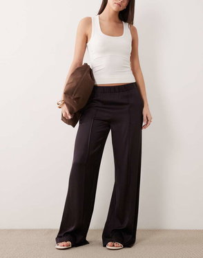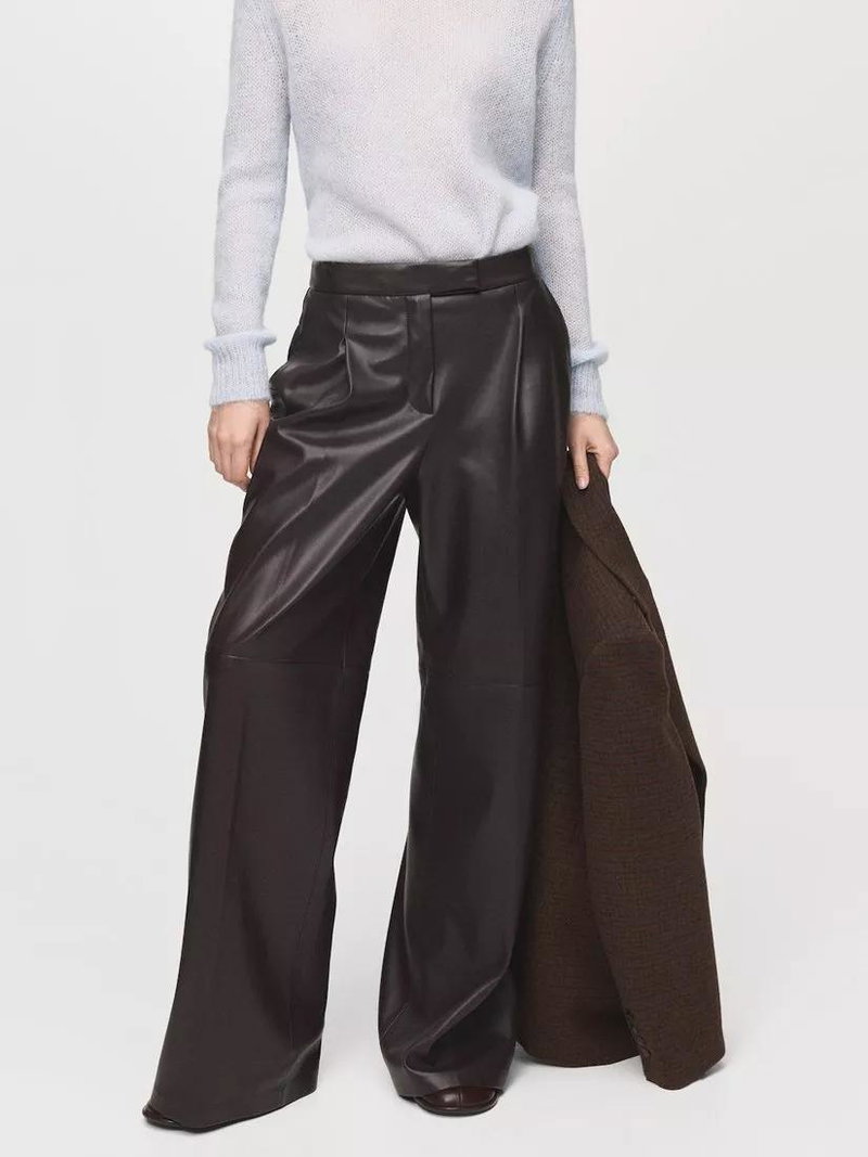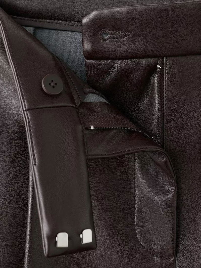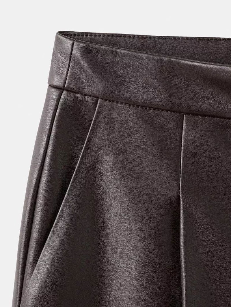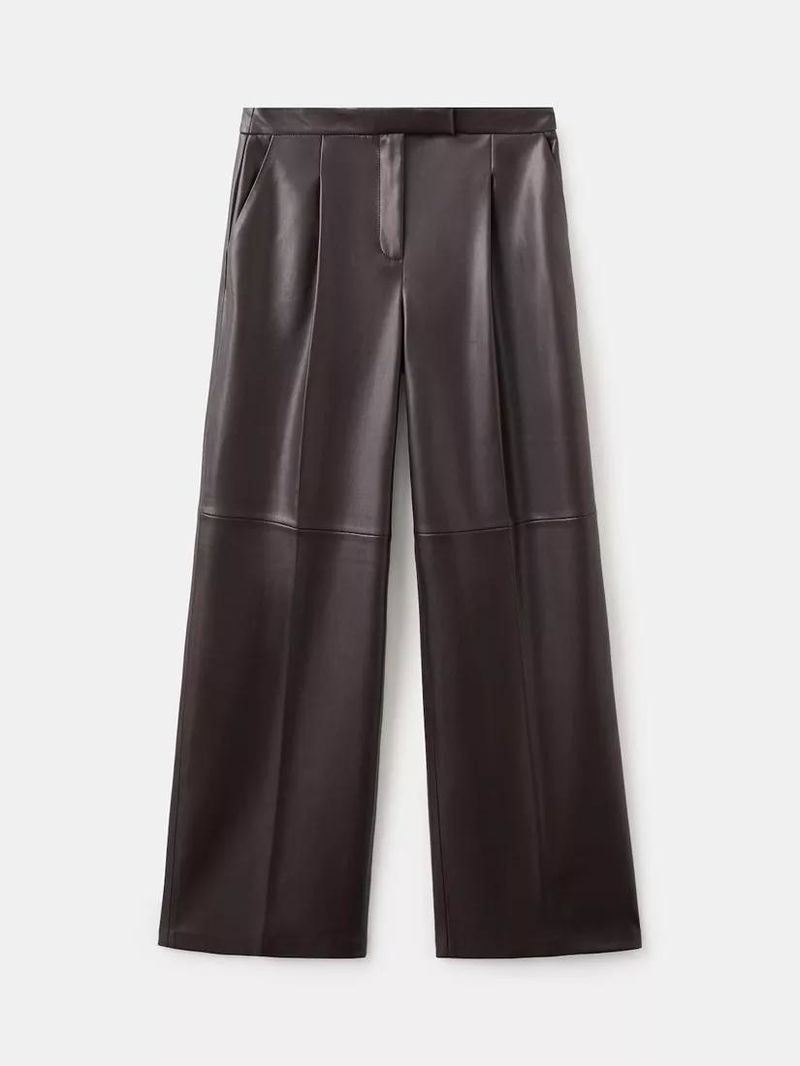 Faux Leather Wide Leg Trousers, Chocolate