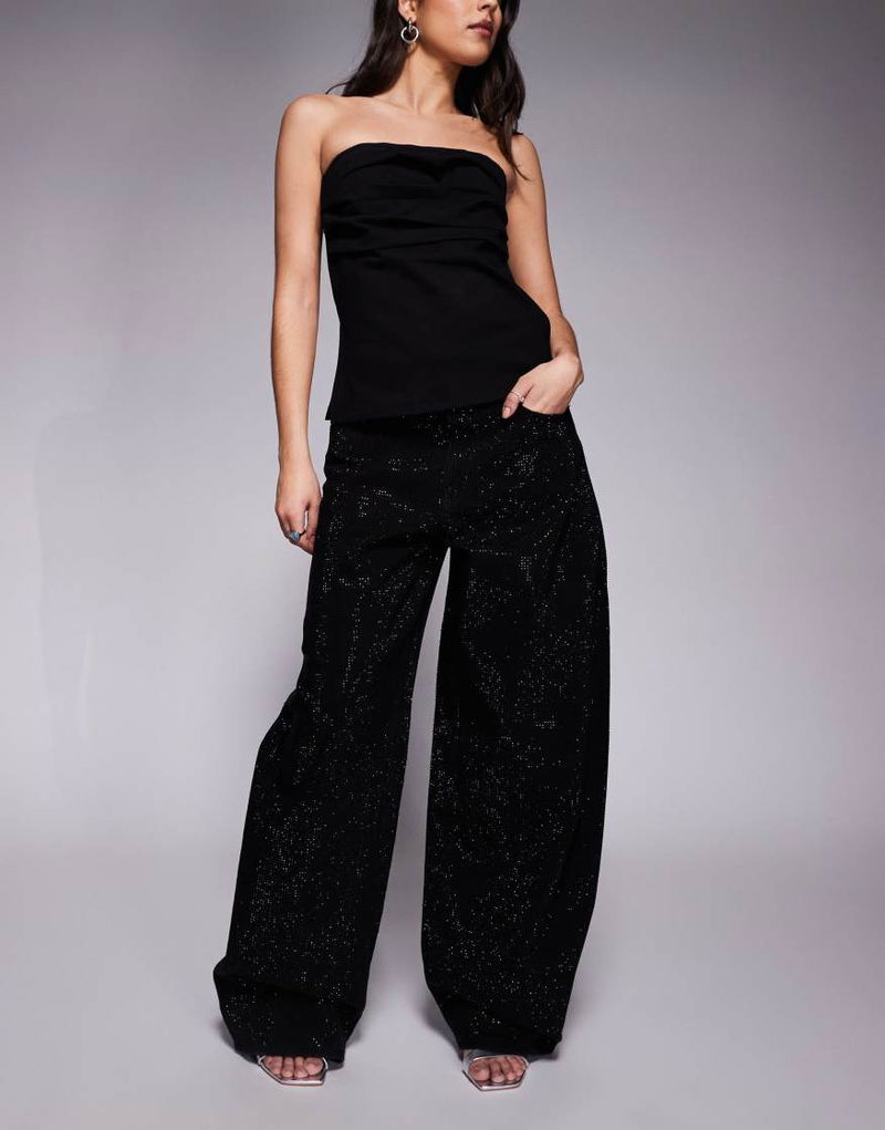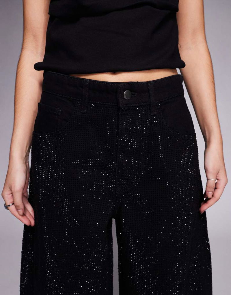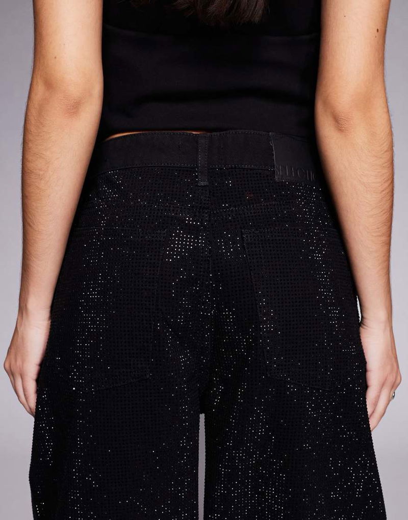 Featuring Kaia Gerber 100% Cotton Hotfix Barrel Jean In Black