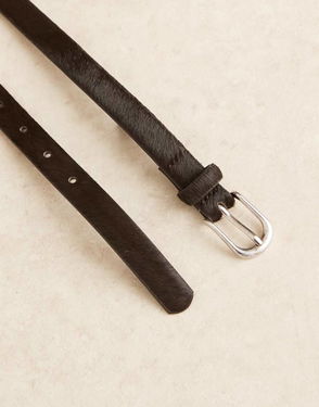 Featuring Kaia Gerber 100% Leather Slim Belt With Silver Buckle In Black