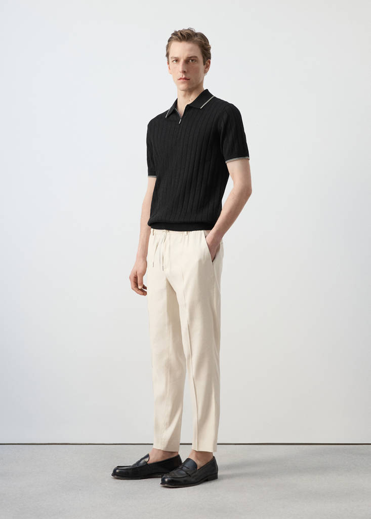 Fine-knit Polo Shirt With Zip