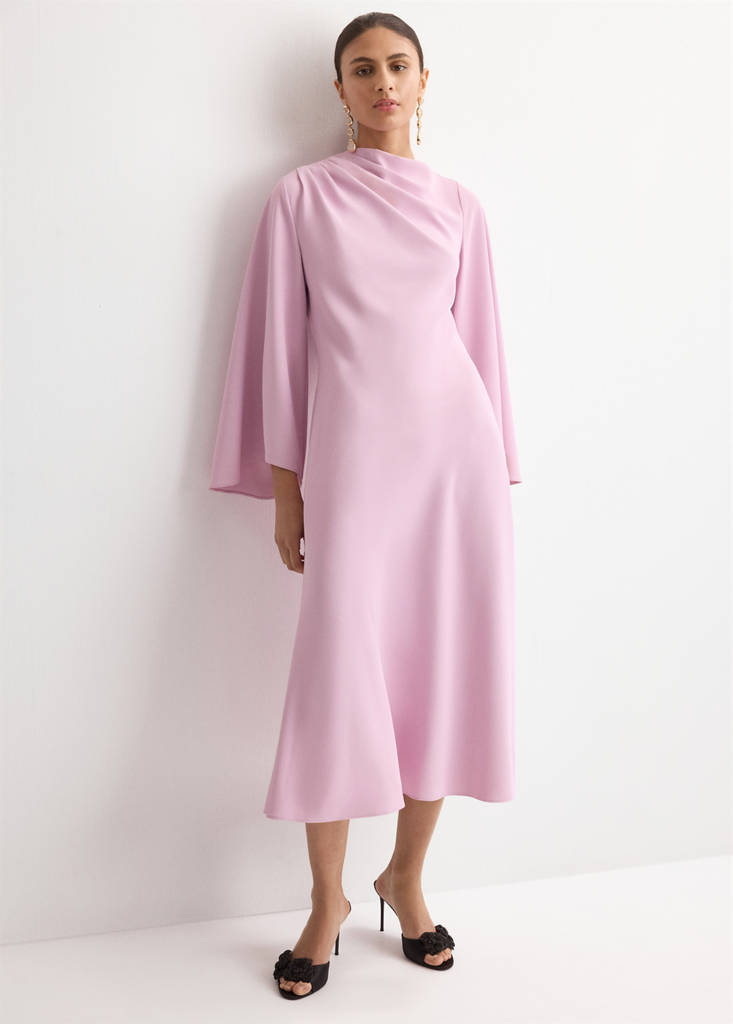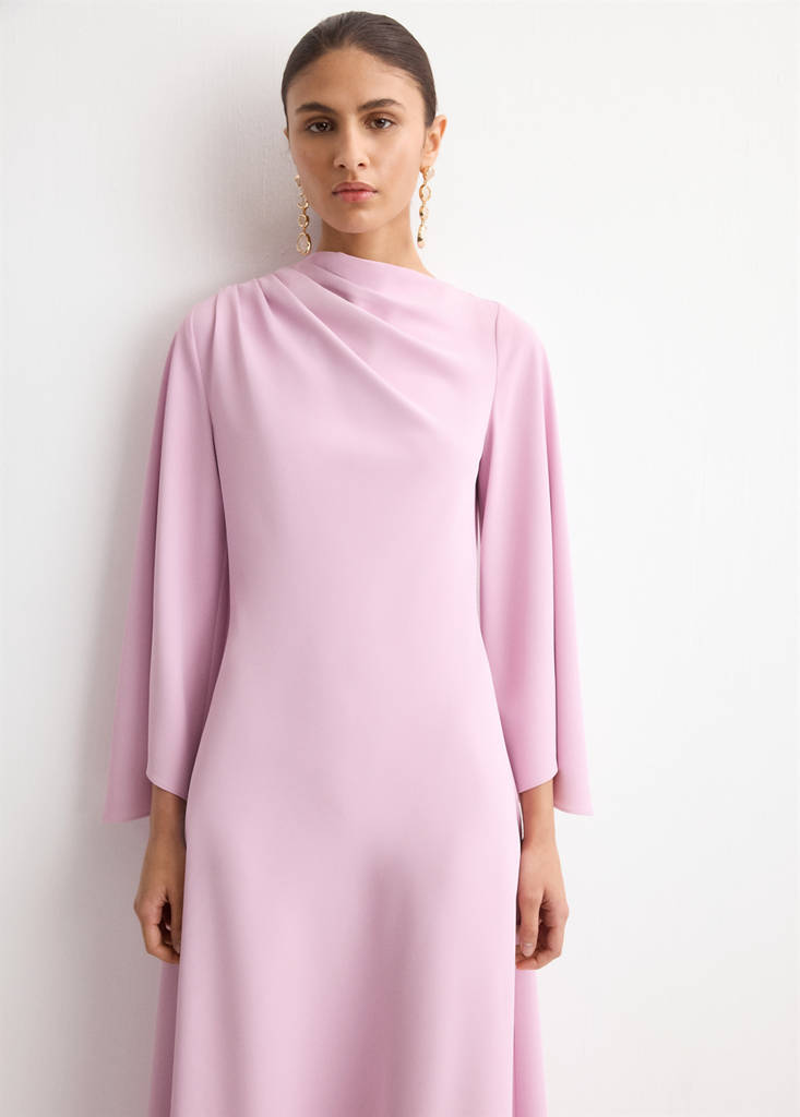 Flared-sleeve Satin Dress